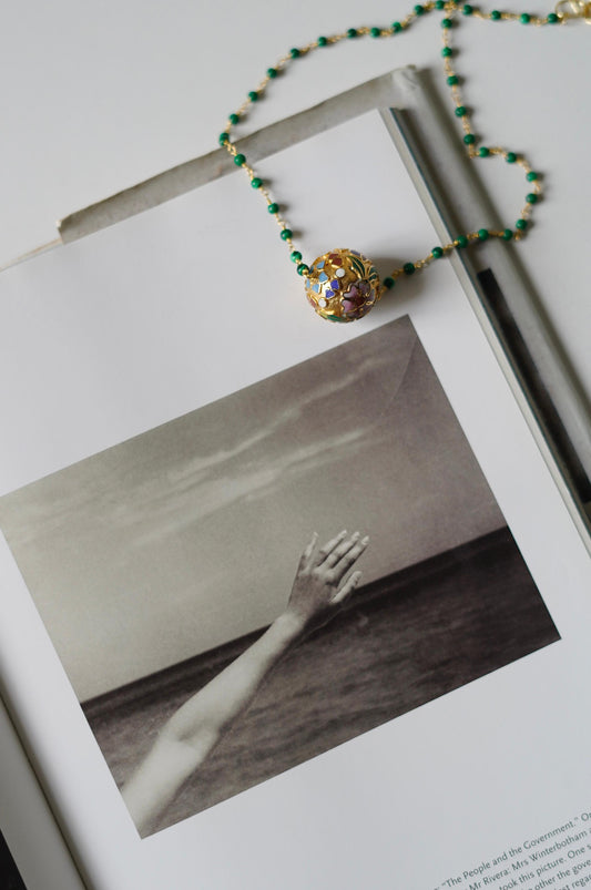 Garden Temple : Vtg Cloisonné Bead & Malachite Chain NecklaceRegular price $98.00 USDRegular priceUnit price / per-