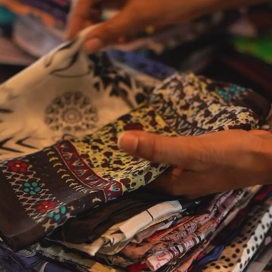 They can be worn as headscarves, knotted at the neck, styled on a bag, or wrapped as a bandeau. Channeling laid-back bohemia or quiet luxury, these scarves add a poetic finishing touch to any look.