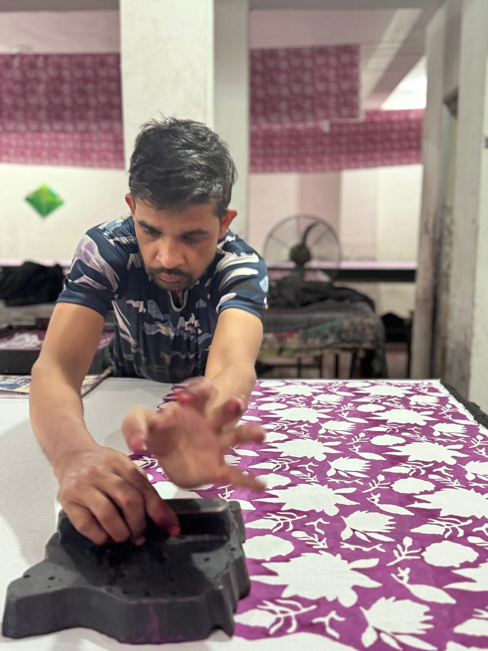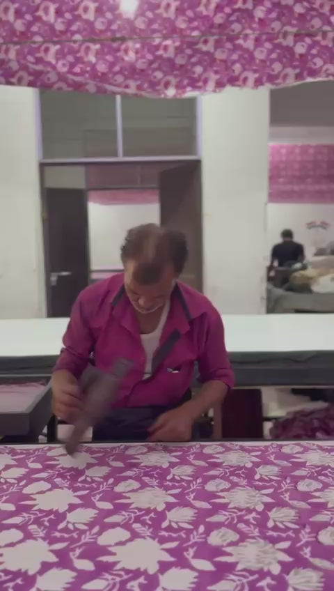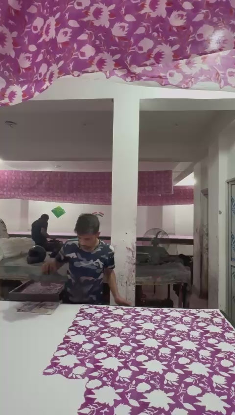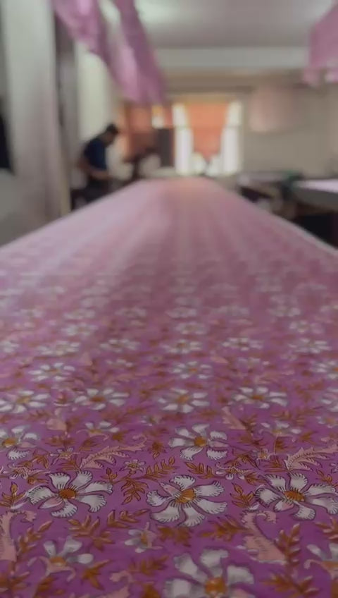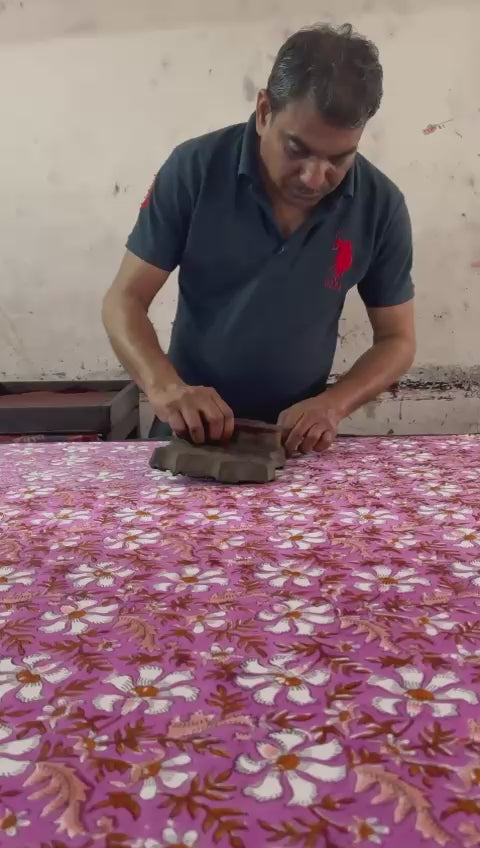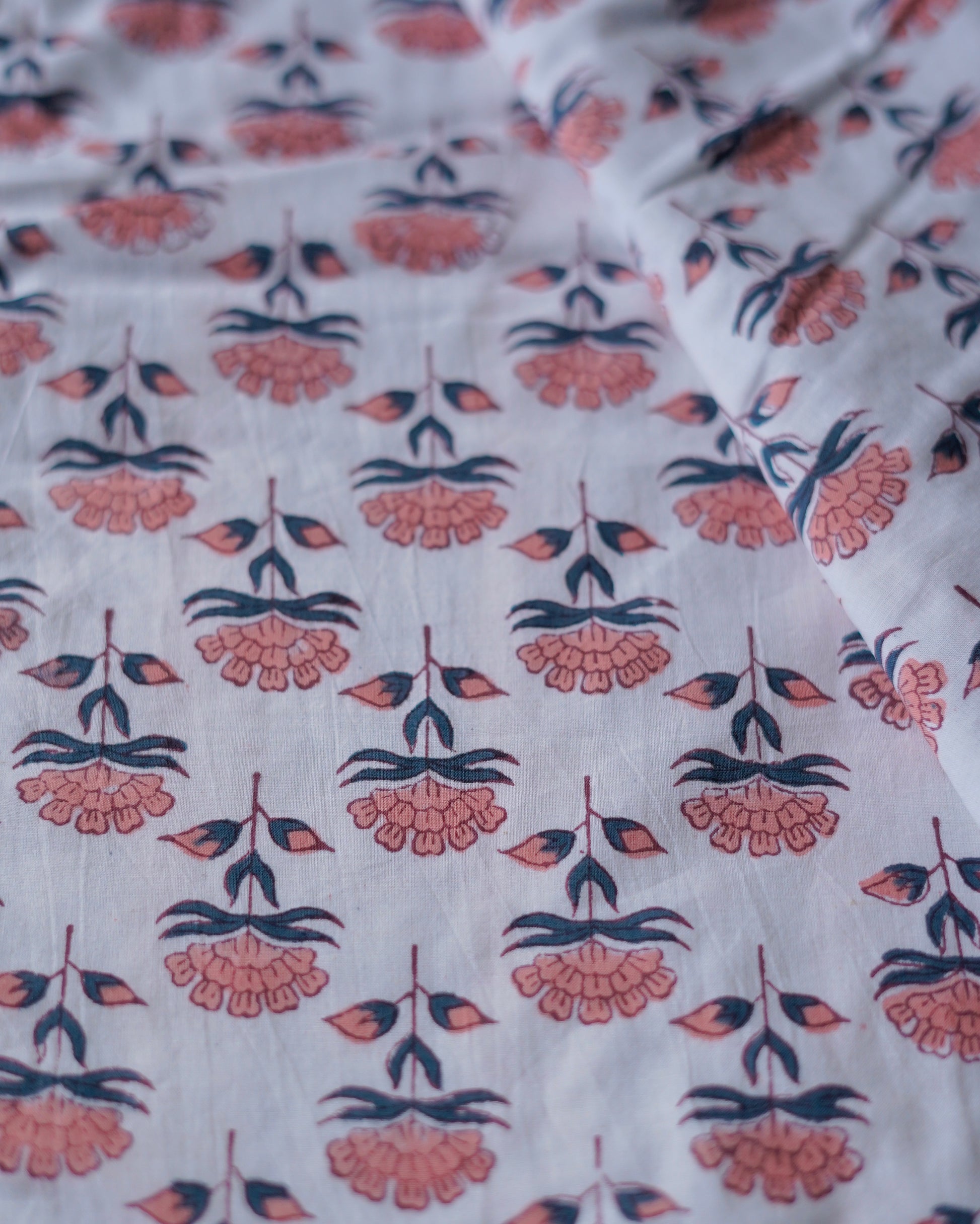Our baby blankets are made using traditional Indian block printing on pure, breathable cotton. Each piece is crafted with three ultra-soft layers—light, airy cotton on the outside and a thin flannel-like layer in the center—to keep your little one cozy without overheating.