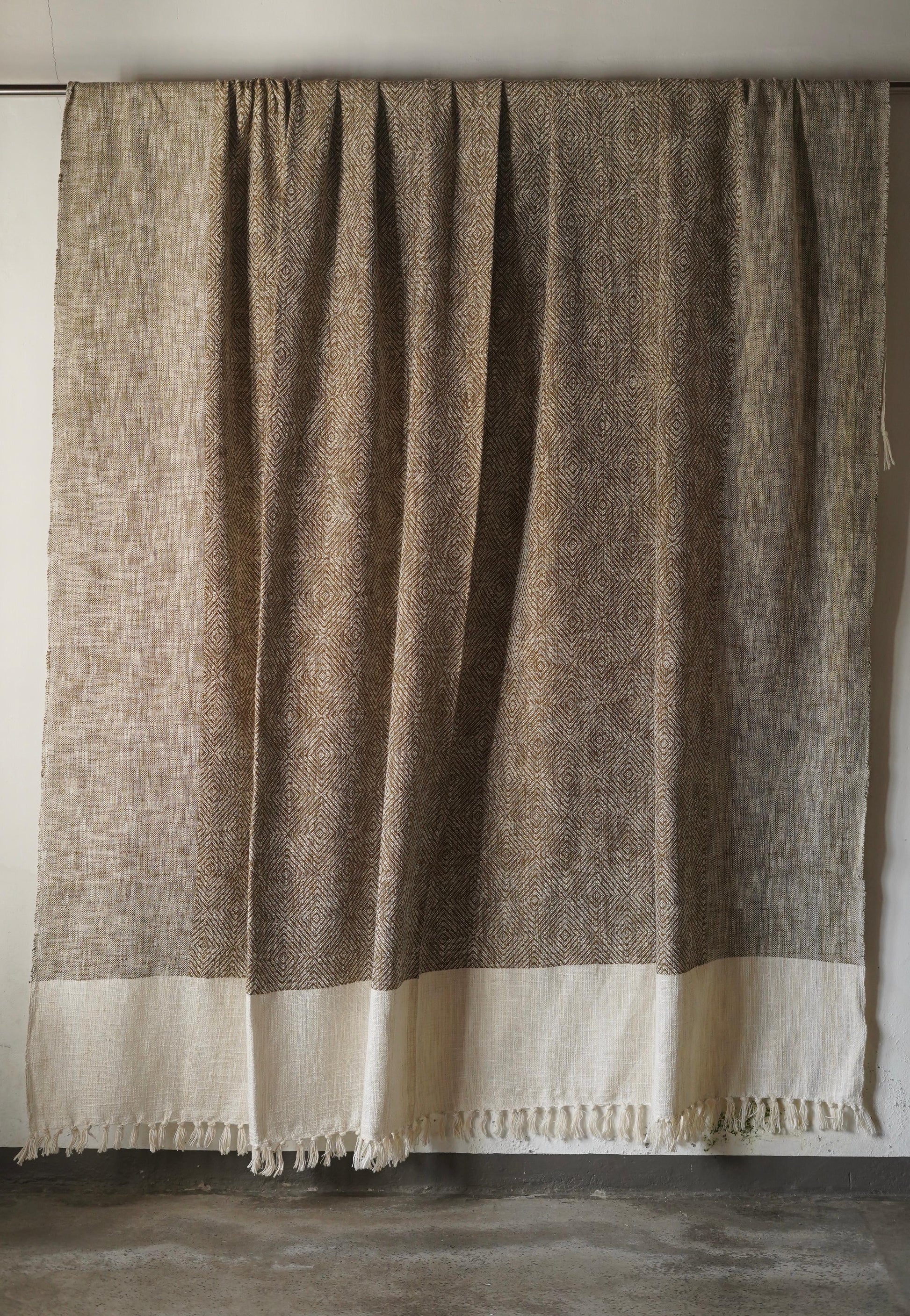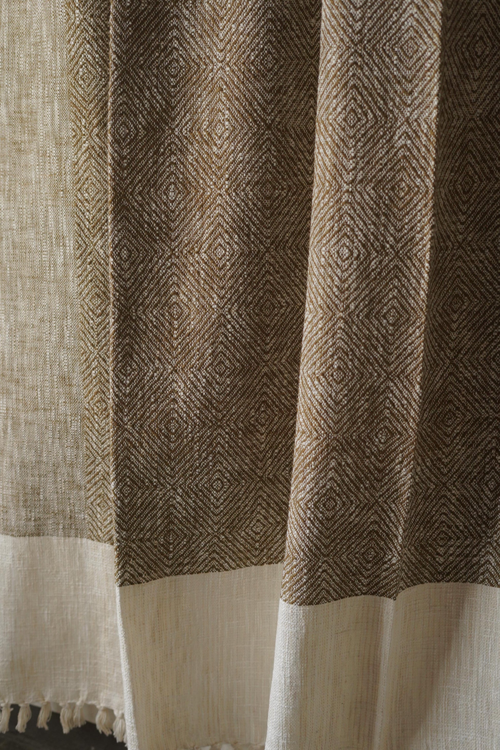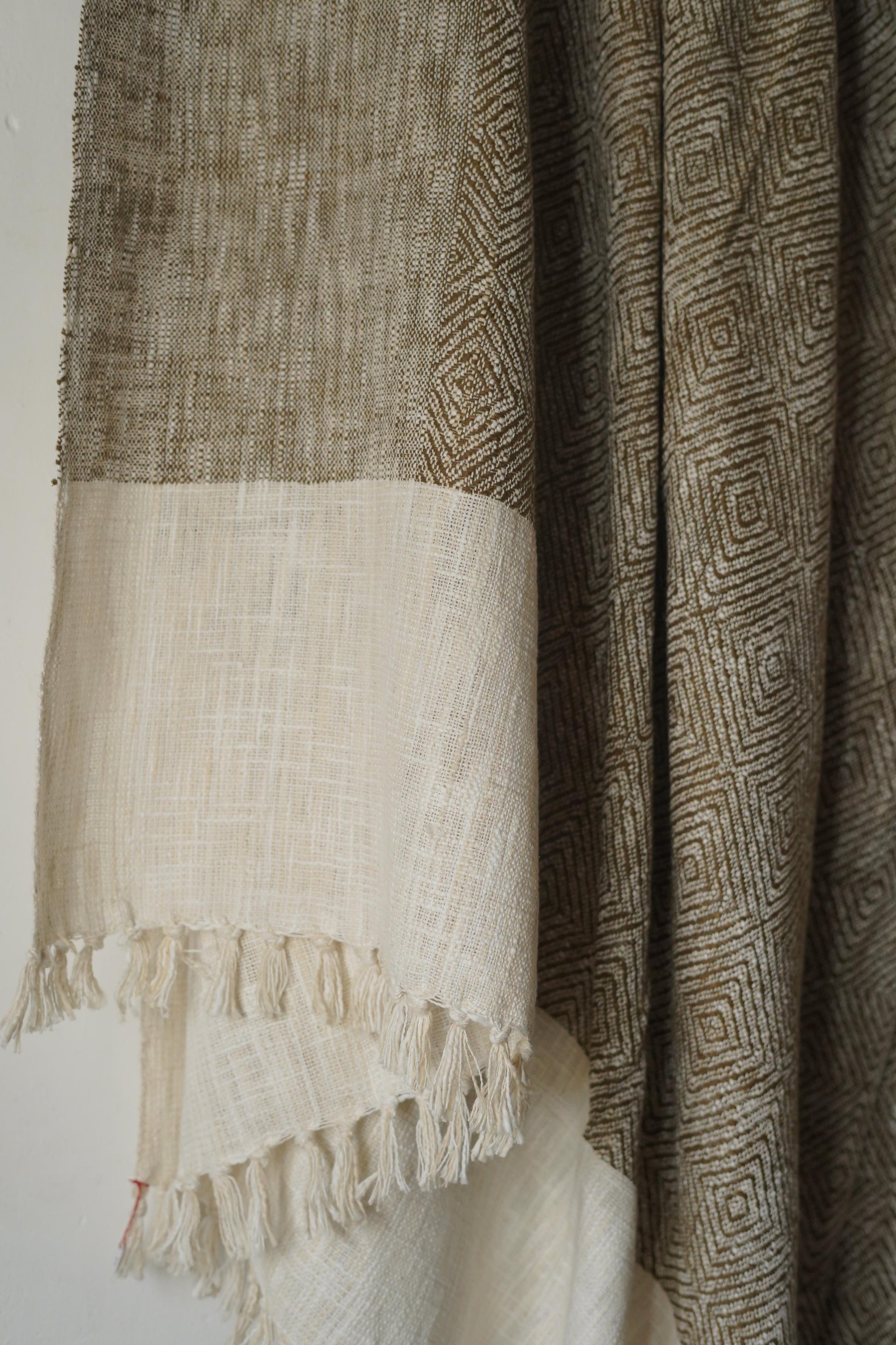 Each piece is made from natural fibers and features a soothing palette of earthy hues, deep ochres, warm terracottas, soft beiges, and muted browns reflecting the raw beauty of nature. The texture is soft yet sturdy, with a gentle drape that enhances their organic appeal.