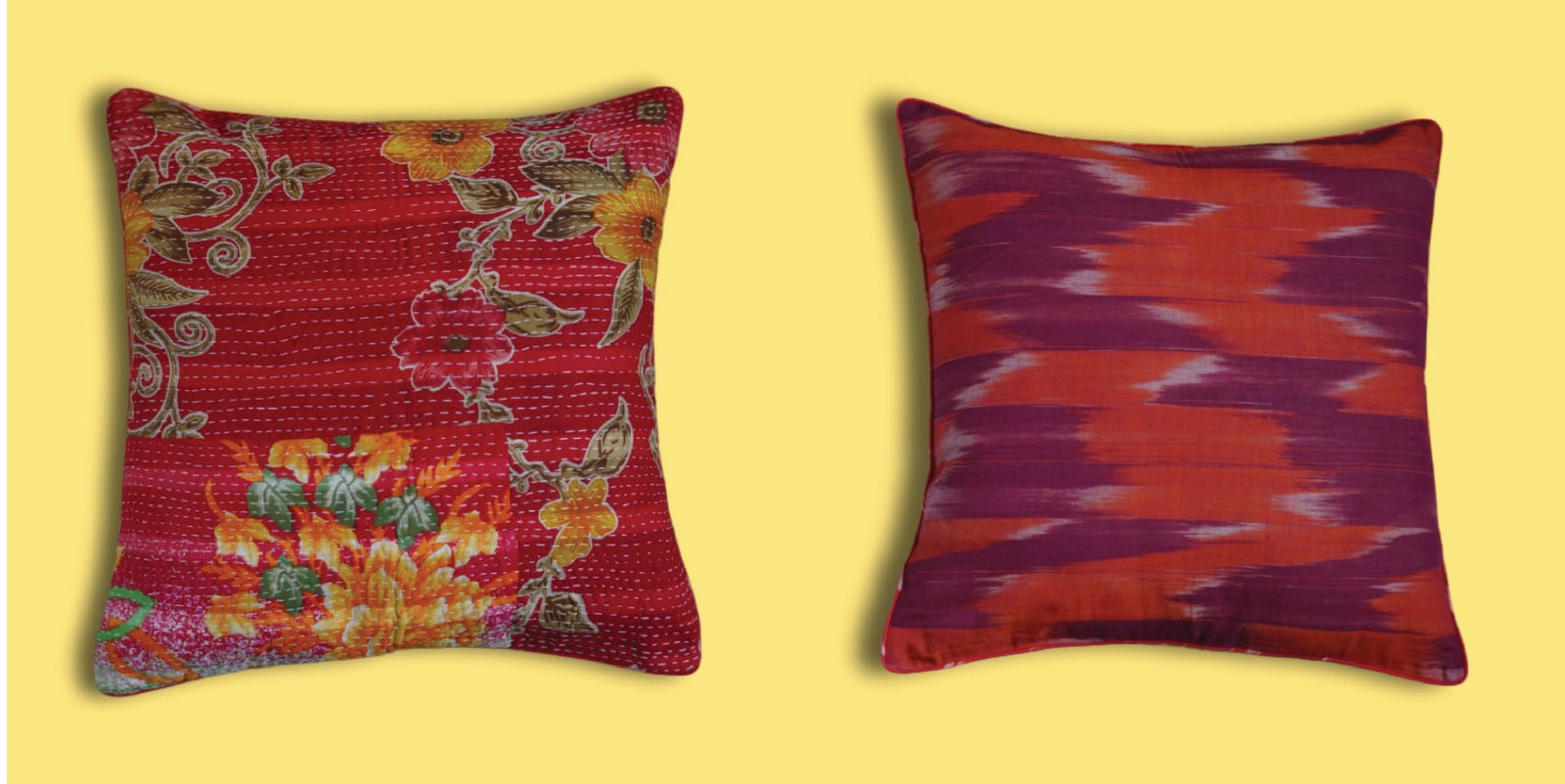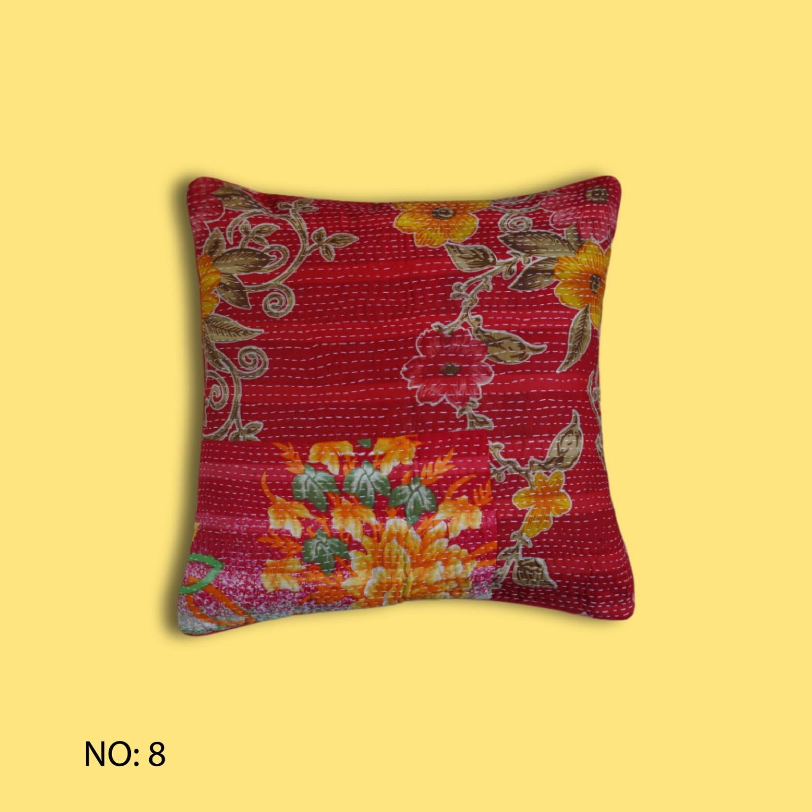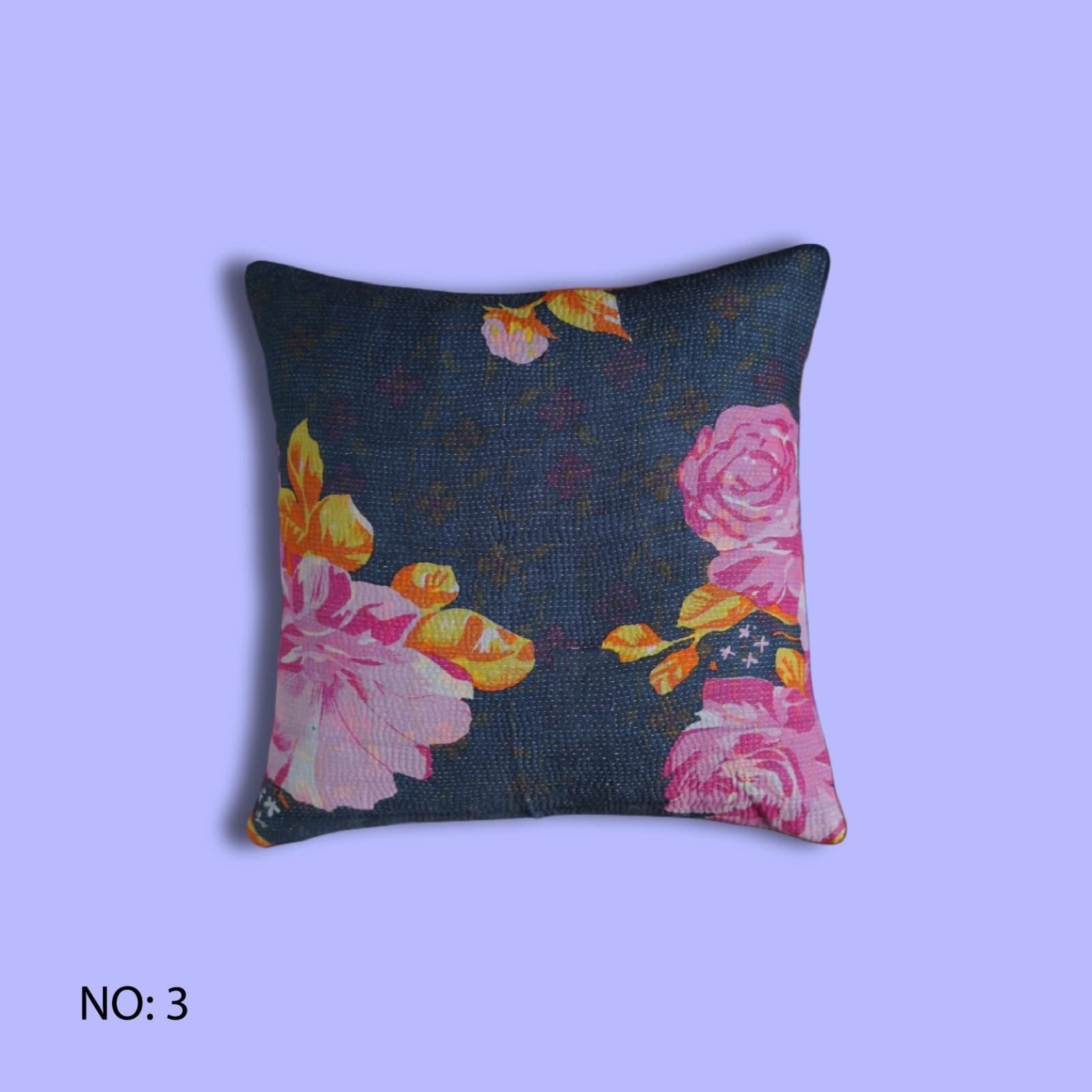 Zarini Vintage Kantha & Ikat Cushion Cover (18x18 inch)