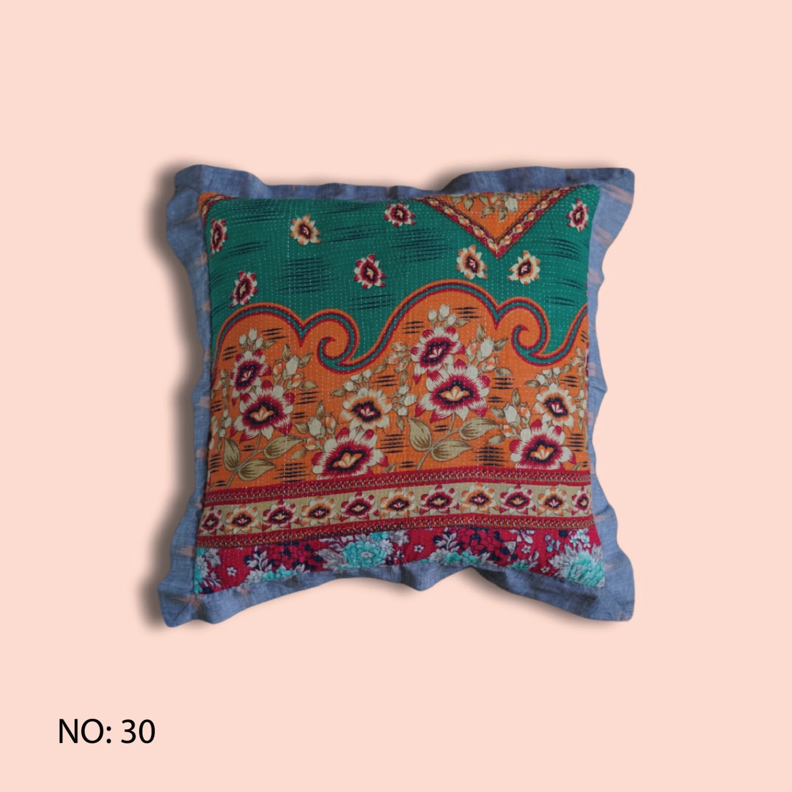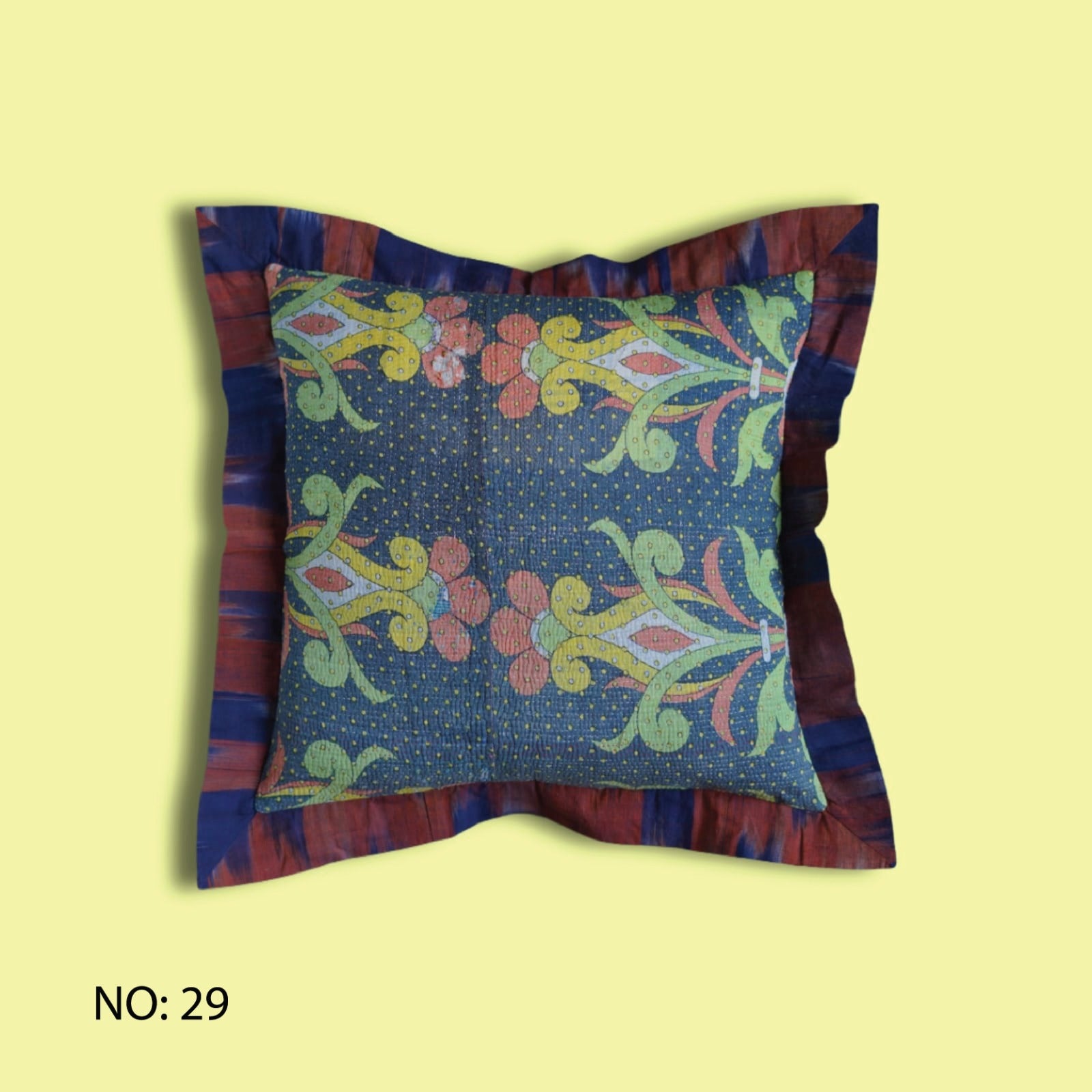 Chameli Vintage Kantha & Ikat Cushion Cover (20x20 inch)
