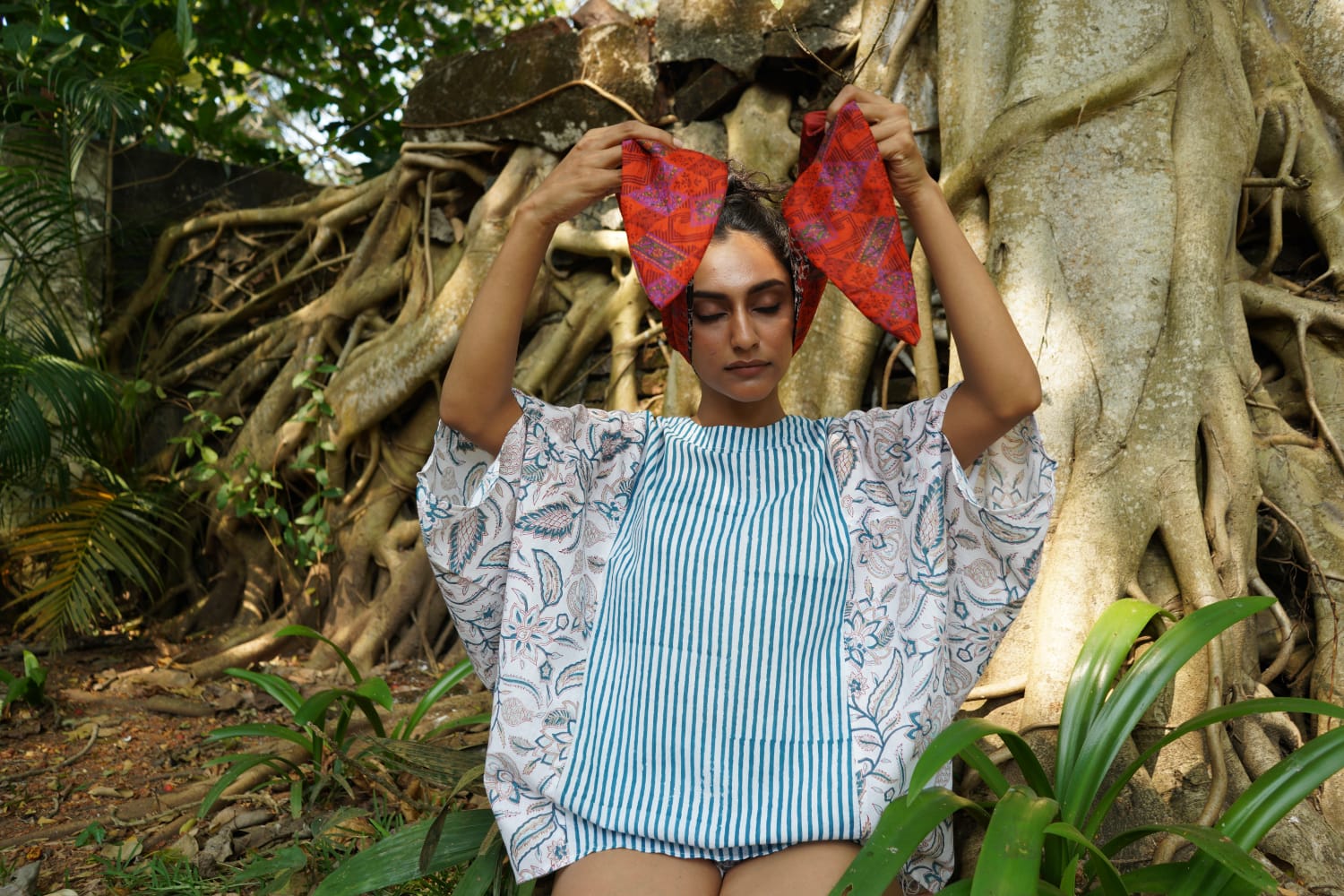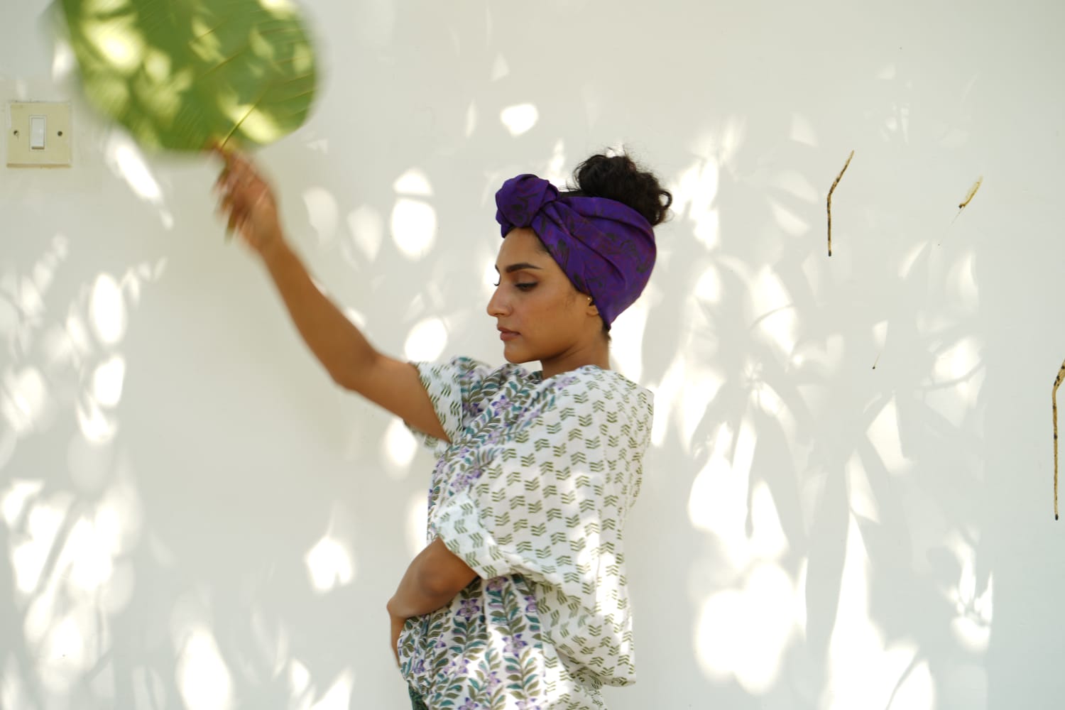 So we did a hair wrap that's been designed for multiple uses, reversible AND handmade from upcycled vintage silk!! Couldn't get better.
