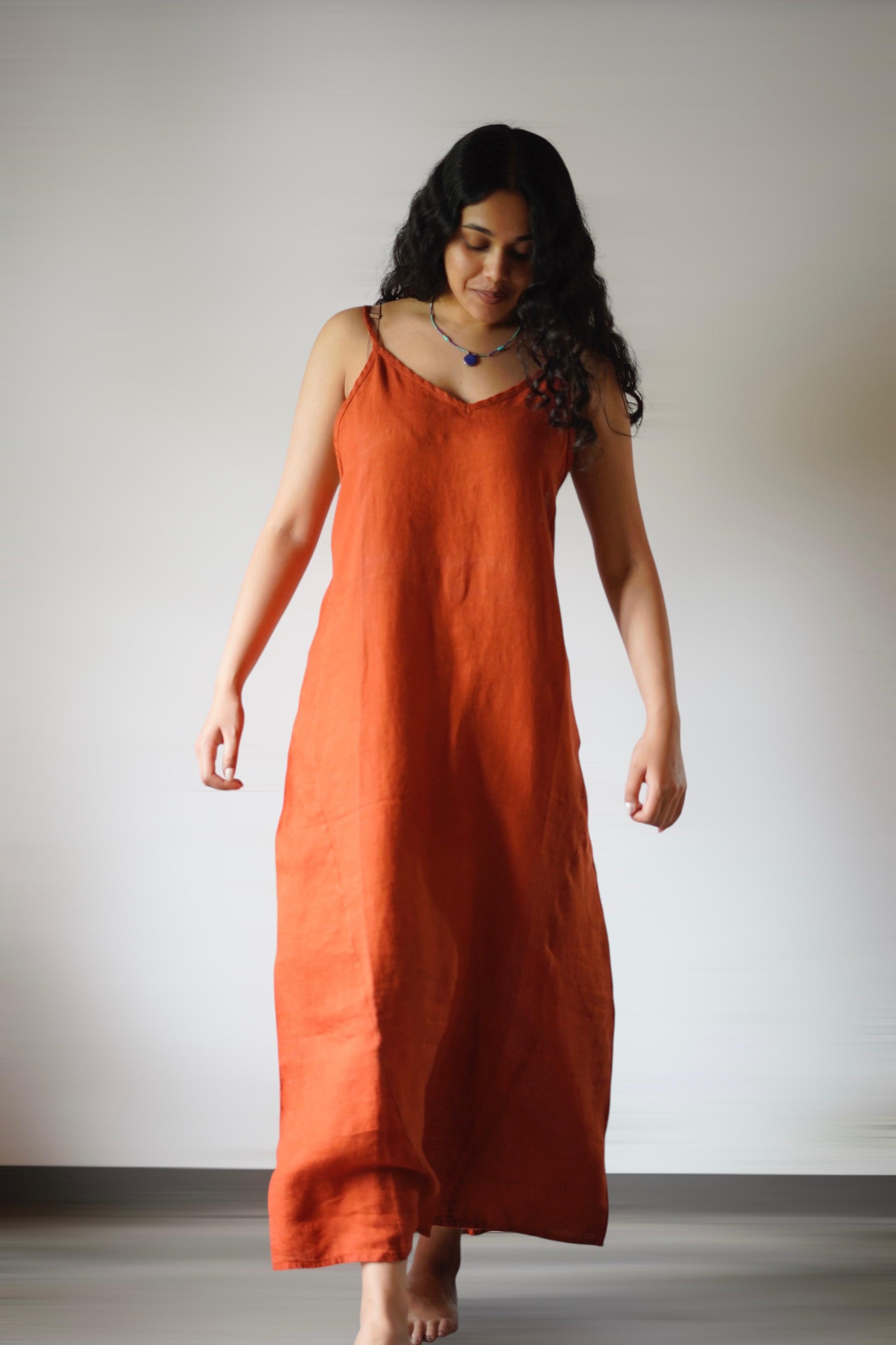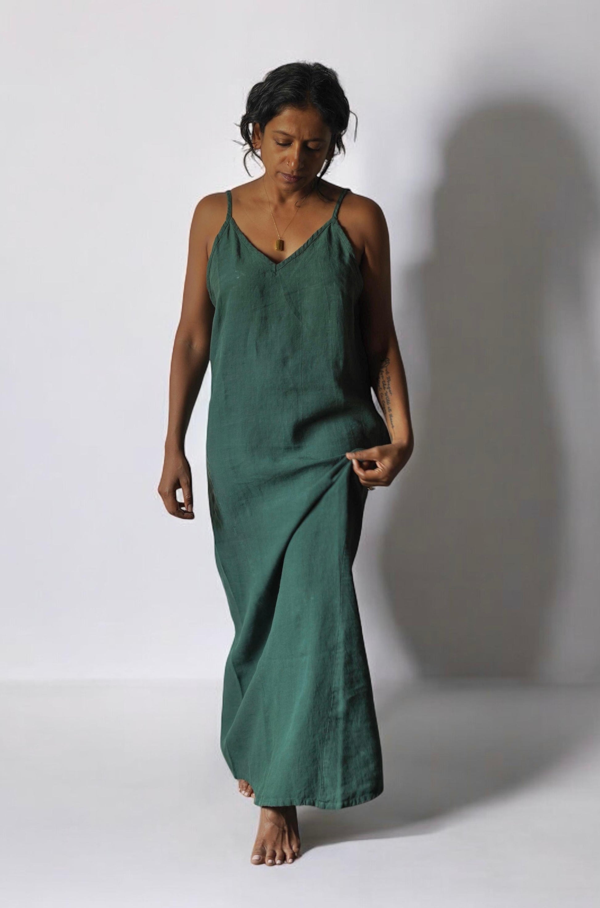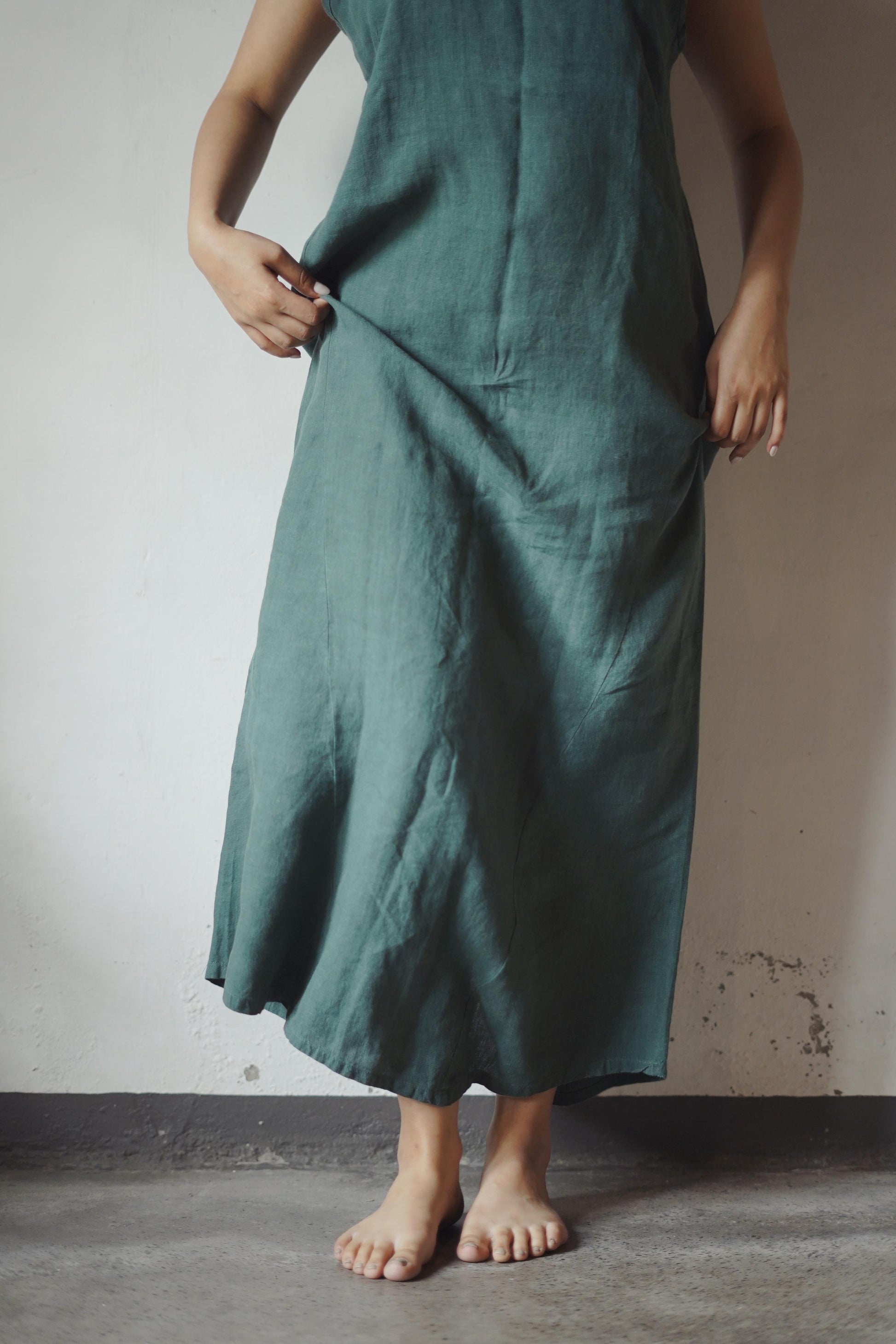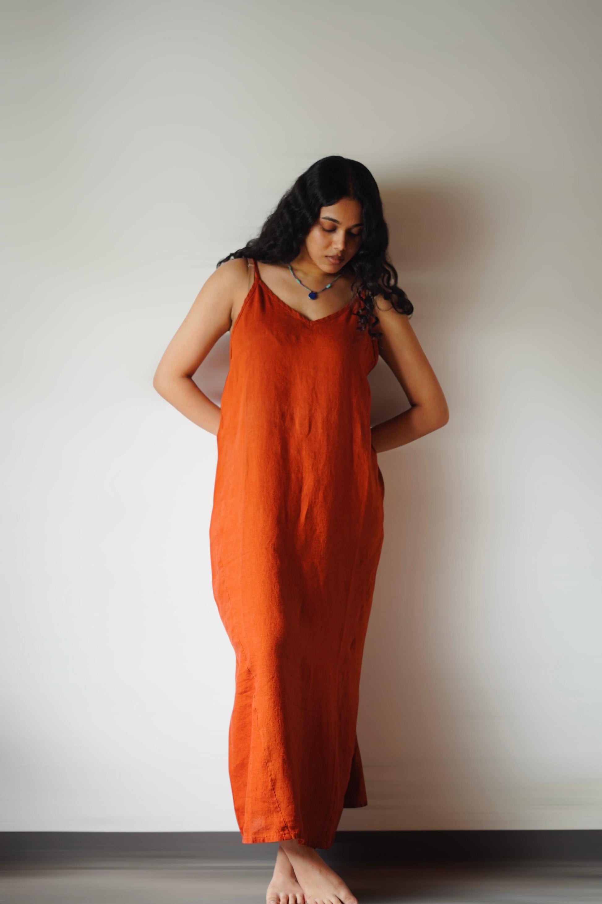 Beautifully drapey pure french flax linen sling dress. There is no feeling on your body quite like pure linen in a style that will always remain a classic. Hand crafted in a relaxed fit with fine adjustable shoulder straps and a classic V neckline. One of those dresses that just gets better with time