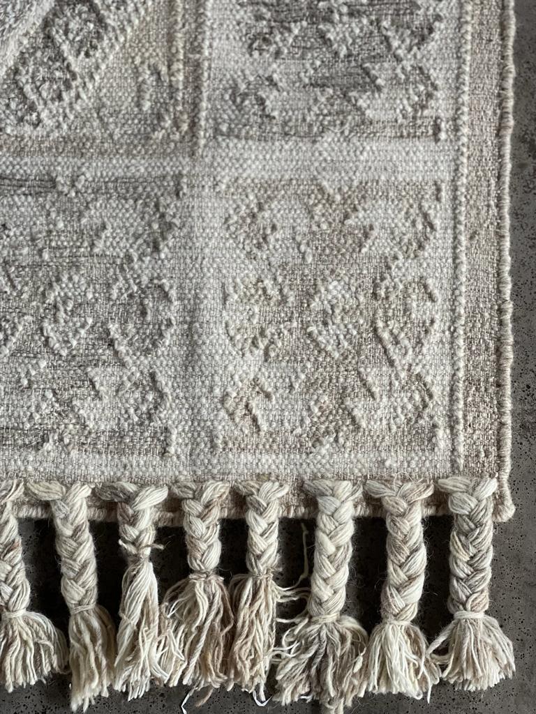 Shedding of loose fibers is normal with new wool rugs and a natural result of being handcrafted.