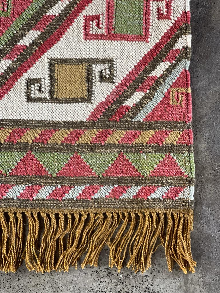 This stunning handcrafted rug is made entirely from plastic bottles, this flatwoven rug is extremely hard wearing and a great option for a home with pets. With the look and feel of soft natural fibers. (does not feel like plastic, feels more like a wool/jute mix) . This rug is water, moth and mould resistant. Its easy to clean and have great environmentally friendly credentials.