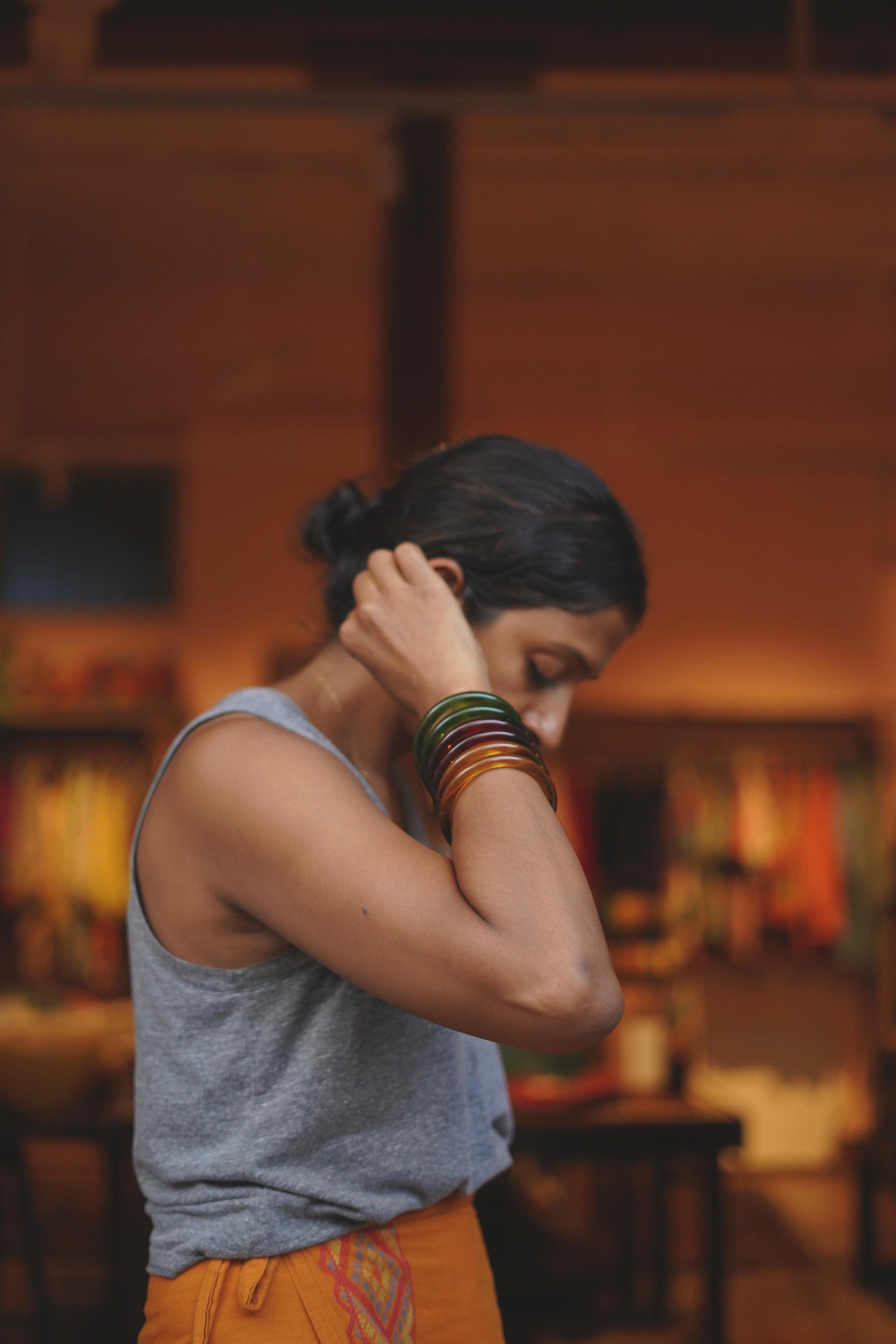 I have always loved glass bangles. There were certain times of the year I would get to buy them, rather than seek them out in a shop. It was during festival season. temple festivals and church festivals . long lines of stalls lined the streets with everything from Sugarcane juice, ceramic kitchenware, toys to rows and rows of bangles laid out in color gradients inside rectangle cardboard boxes. The Love!