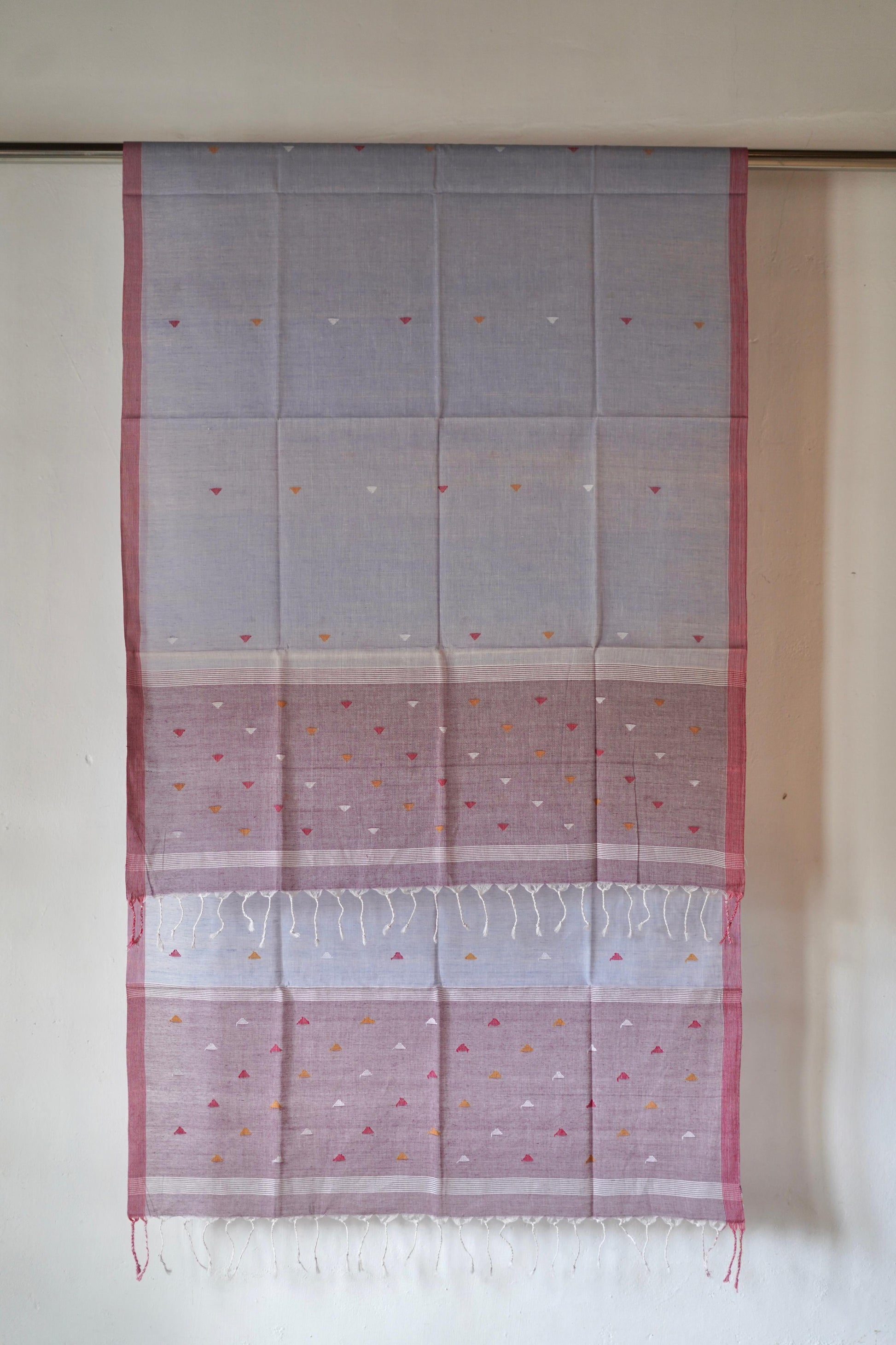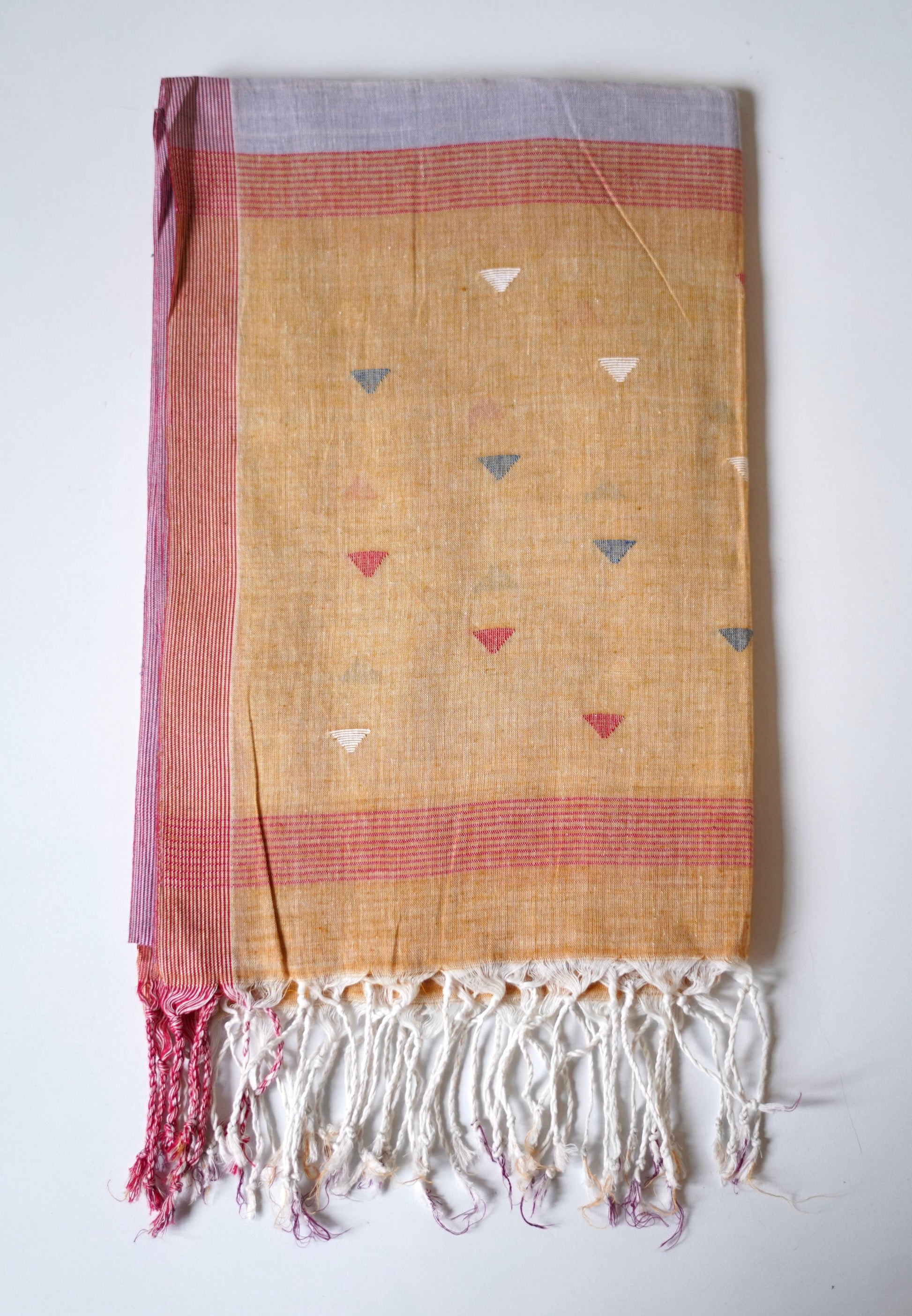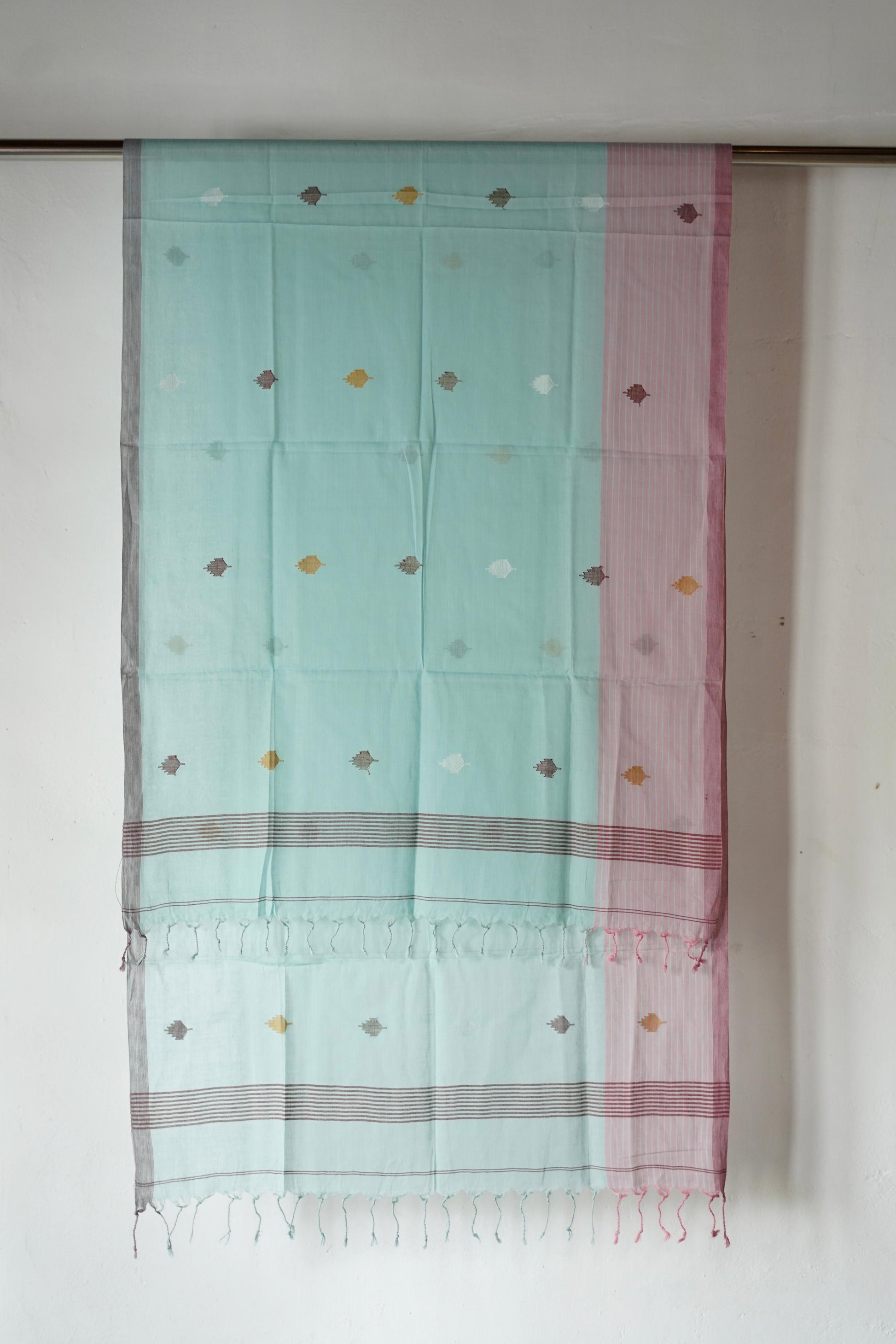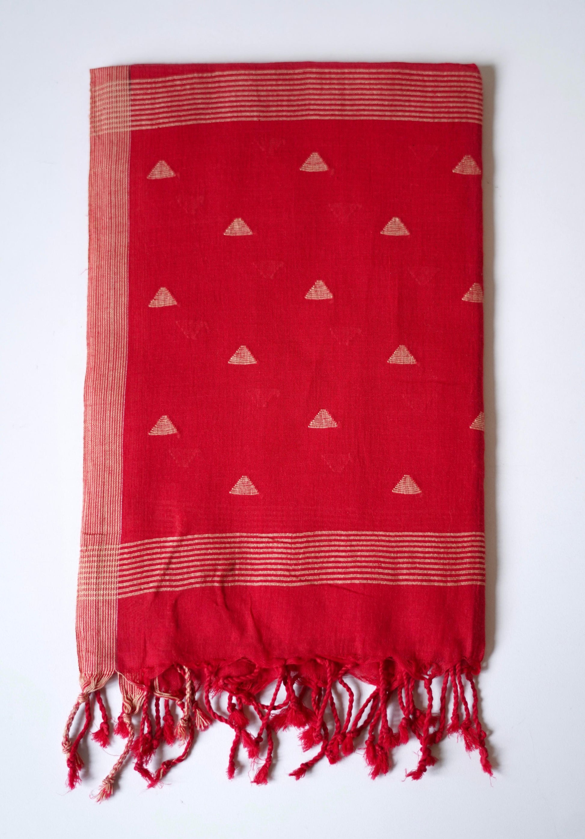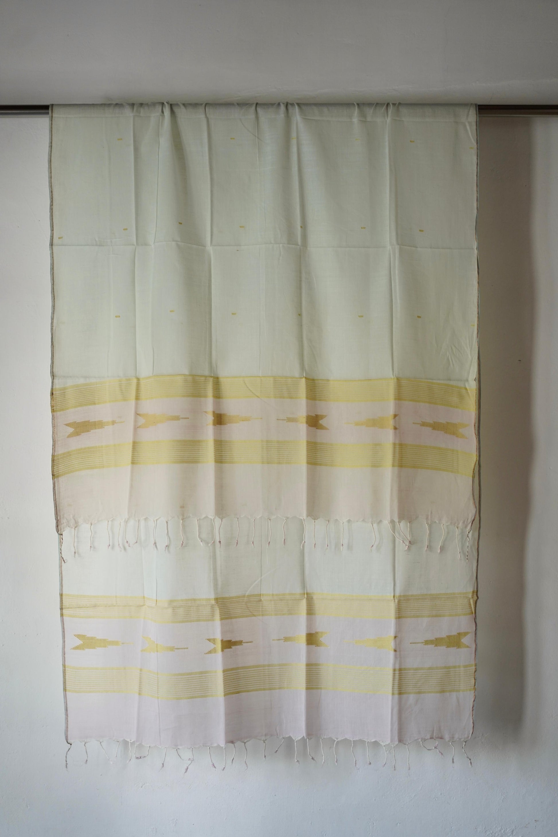 Each scarf is crafted using a time-honored weaving technique, an art form that originated in India centuries ago . Traditionally woven on handlooms with extra weft motifs, this type of weaving is known for its fine muslin texture and subtle, geometric patterns that seem to float within the weave.