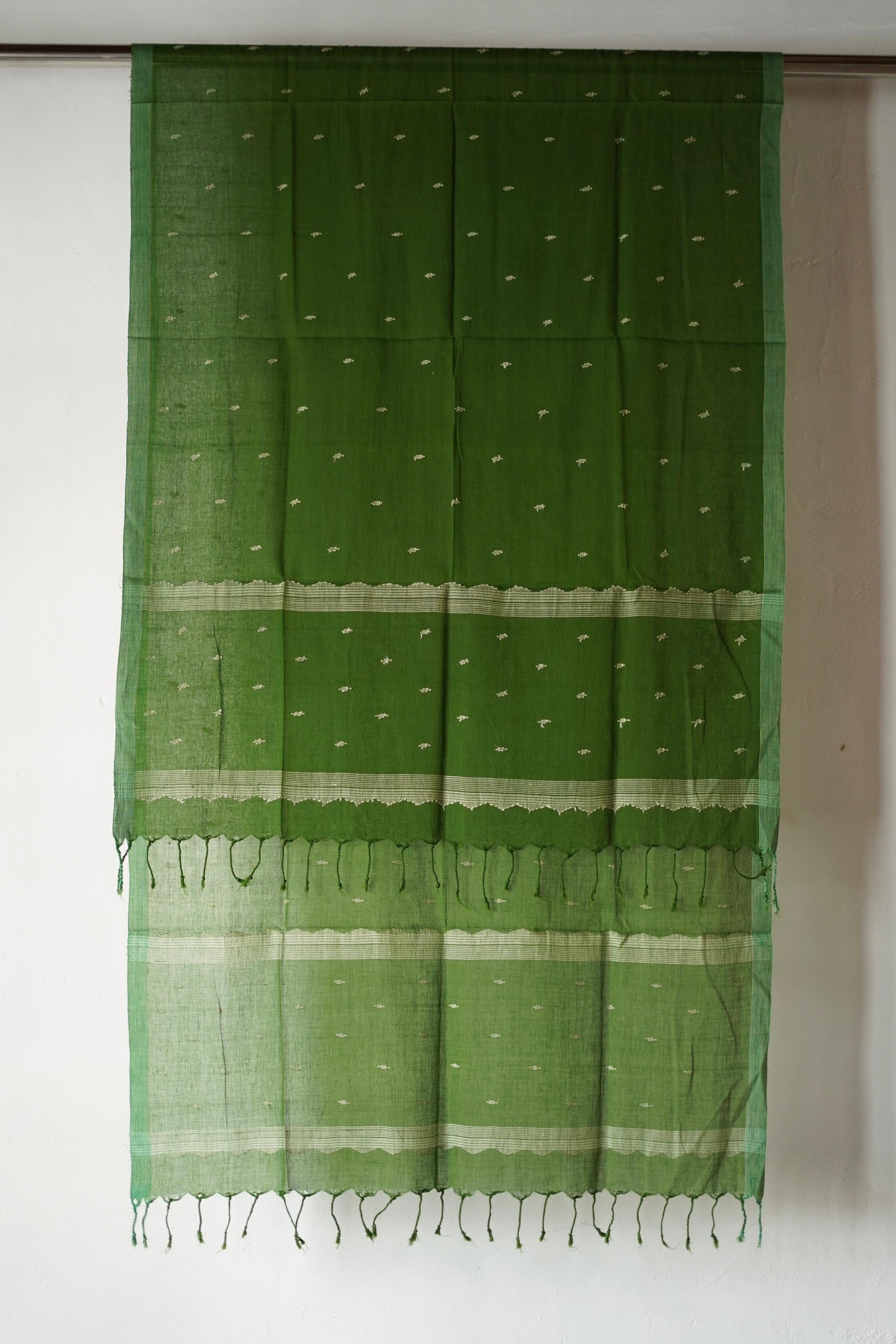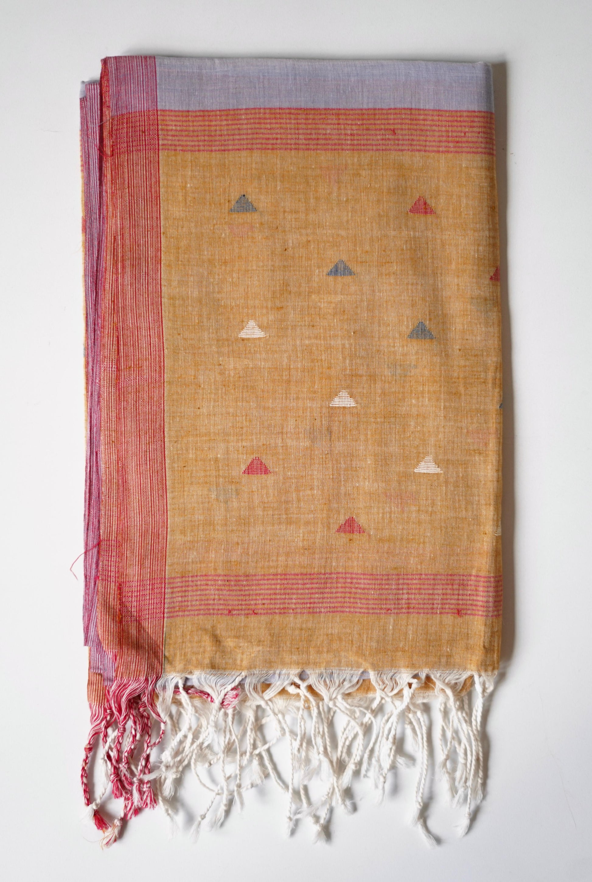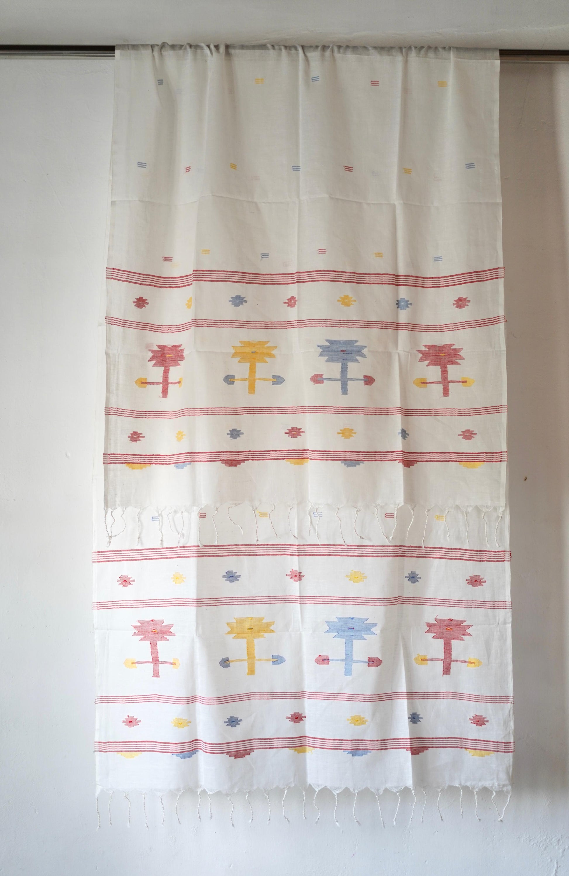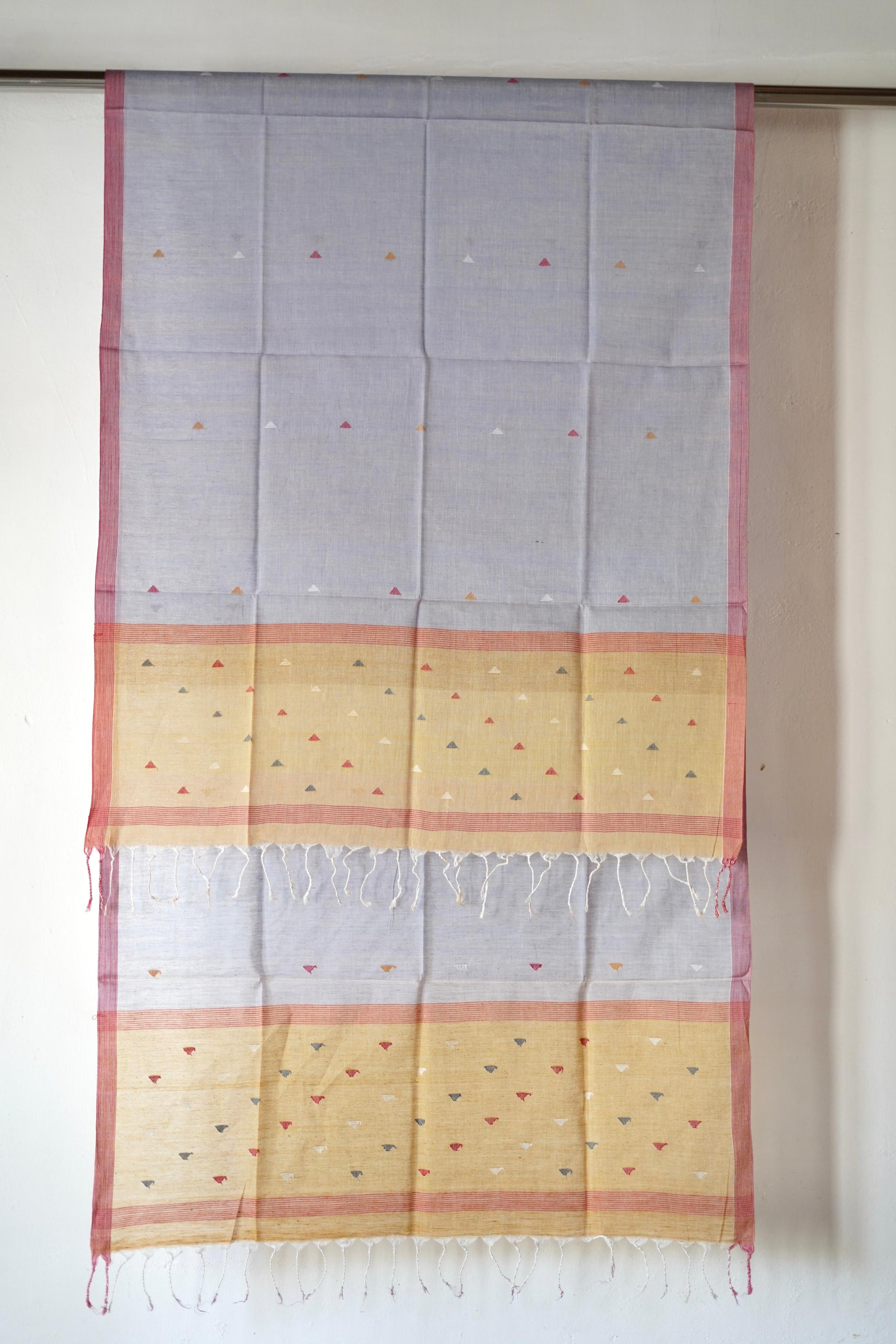 Each scarf is crafted using a time-honored weaving technique, an art form that originated in India centuries ago . Traditionally woven on handlooms with extra weft motifs, this type of weaving is known for its fine muslin texture and subtle, geometric patterns that seem to float within the weave.