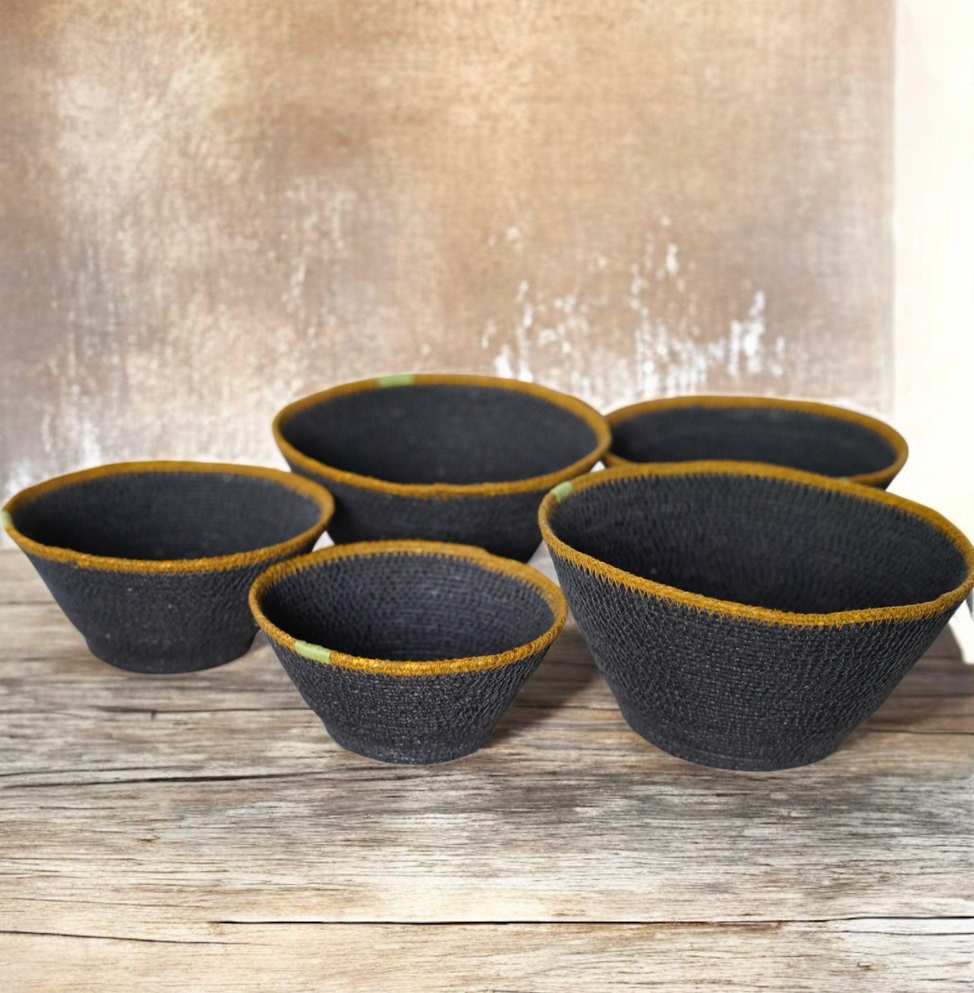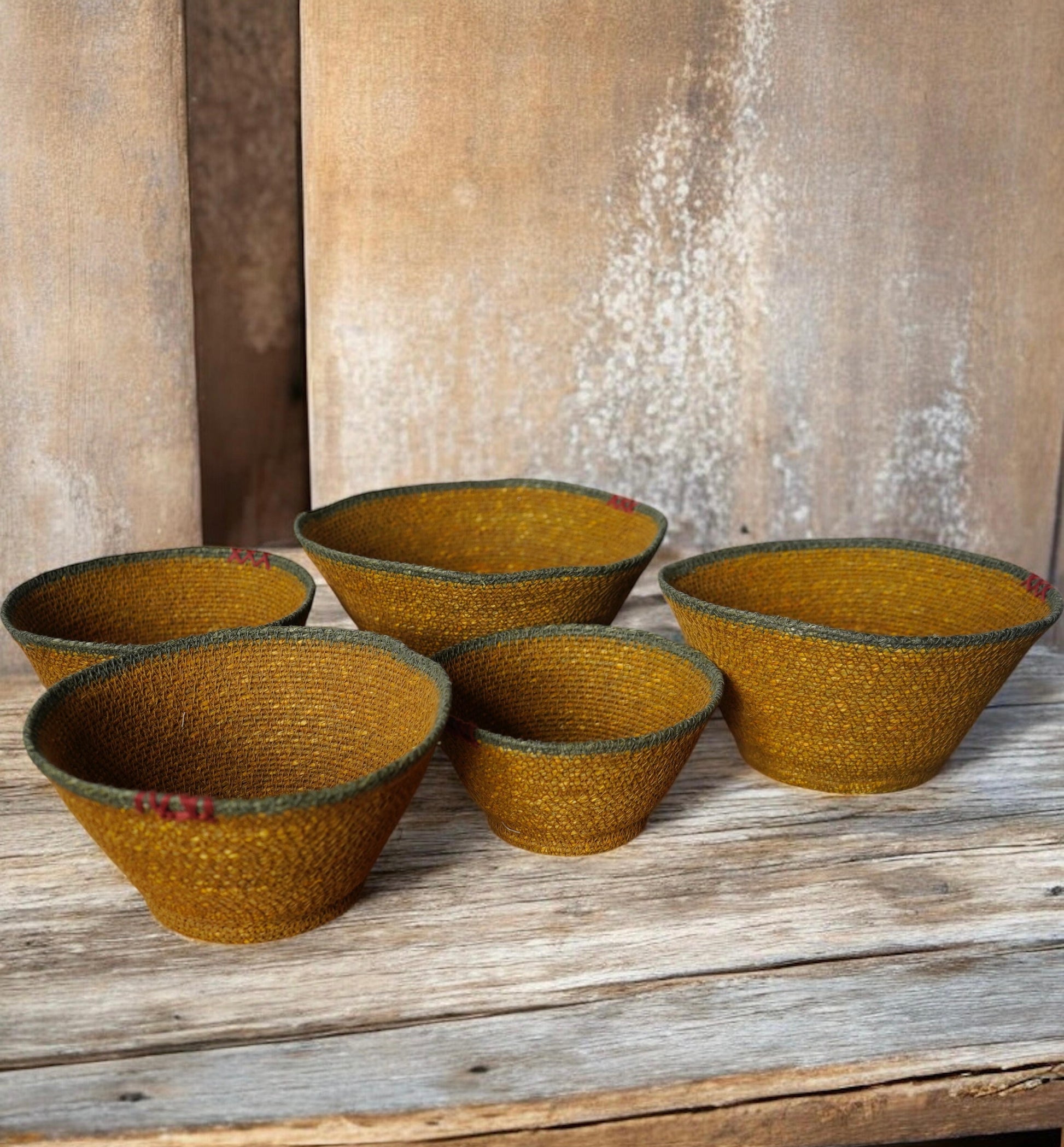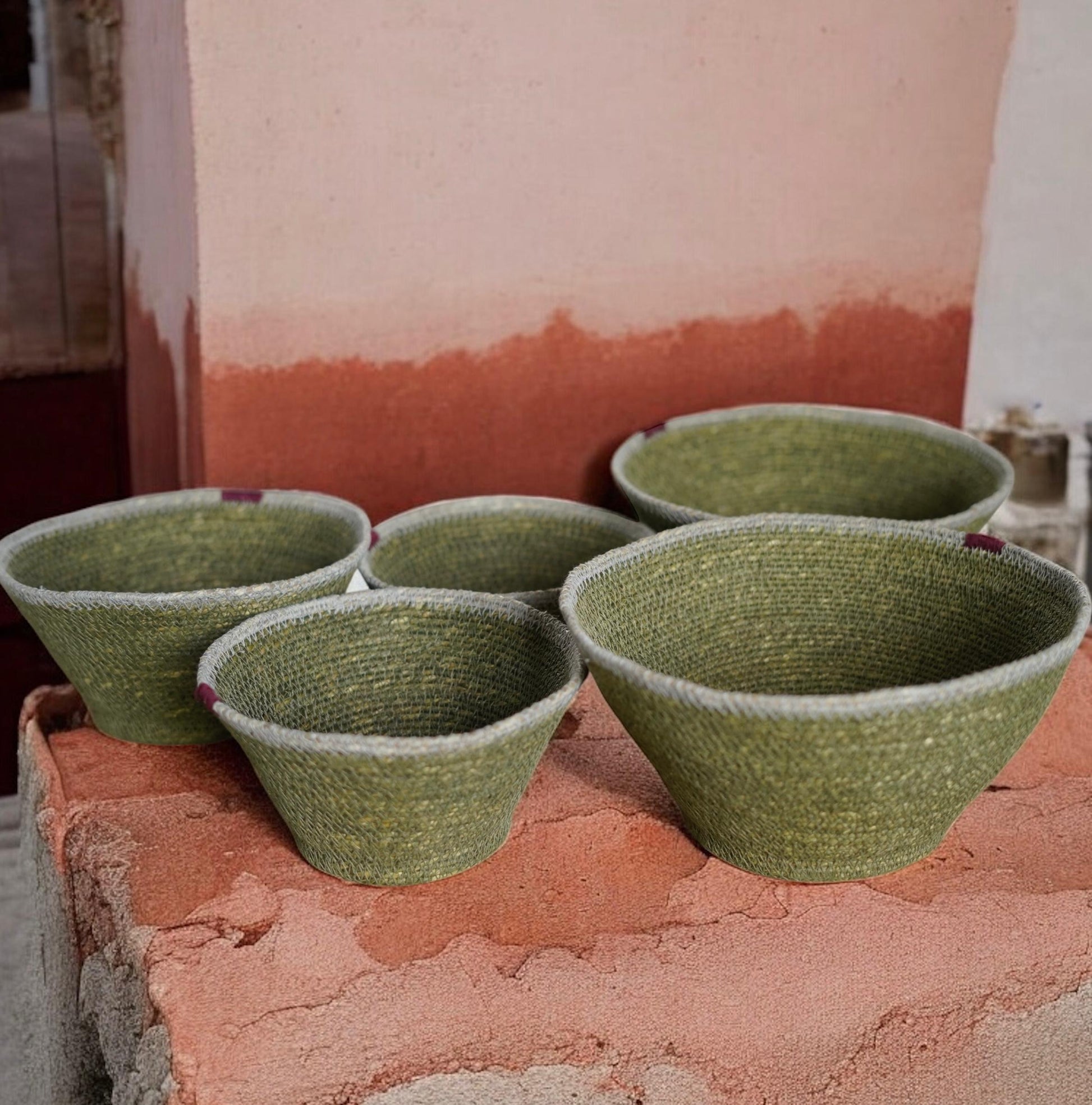 Our handwoven bowls & organizers blend sun-dried seagrass with soft cotton thread, coiled and wrapped by artisans whose craft has been passed down through generations. Each one takes shape slowly—spiral by spiral—as natural fibers are patiently looped and stitched into sculptural forms that feel both timeless and tender.