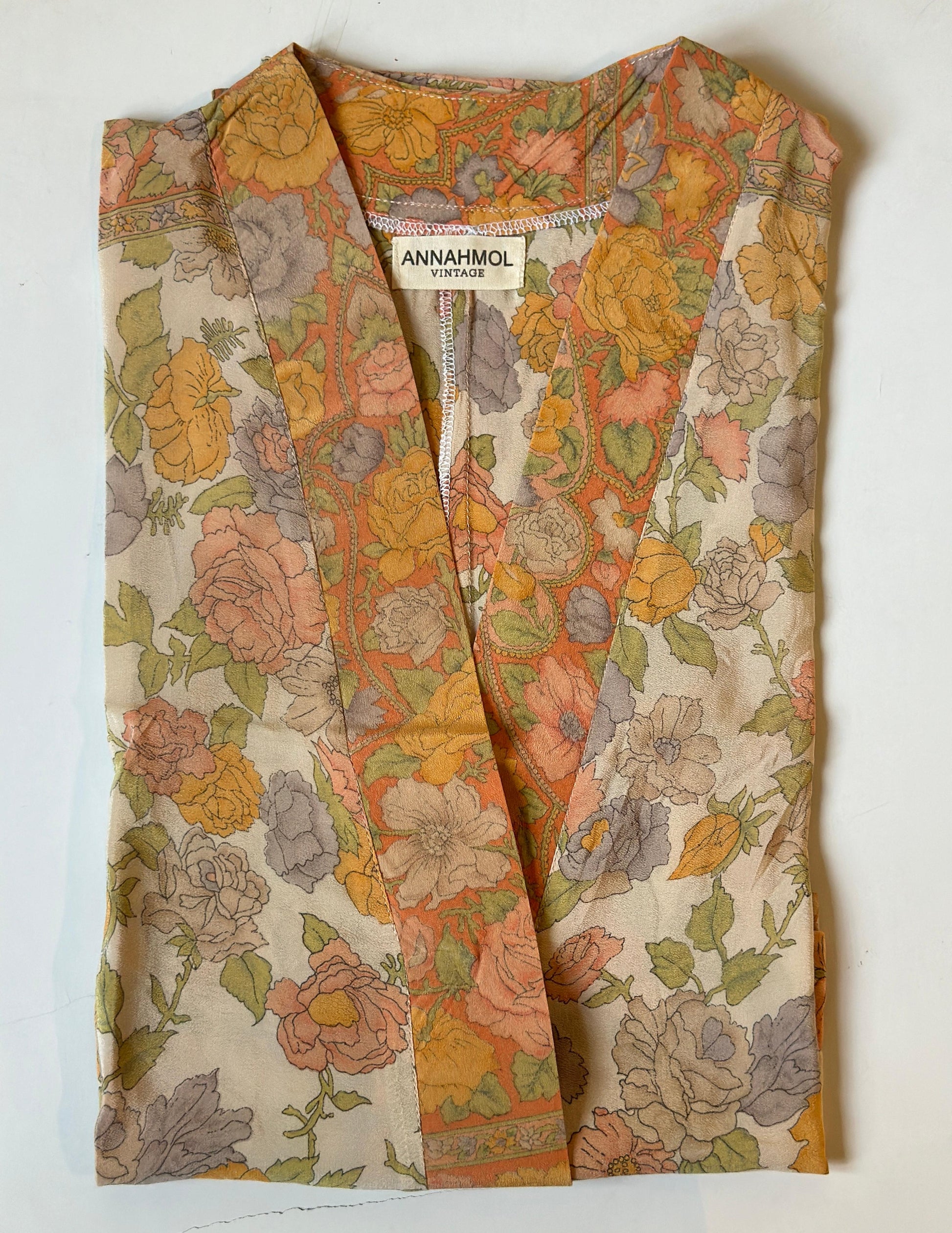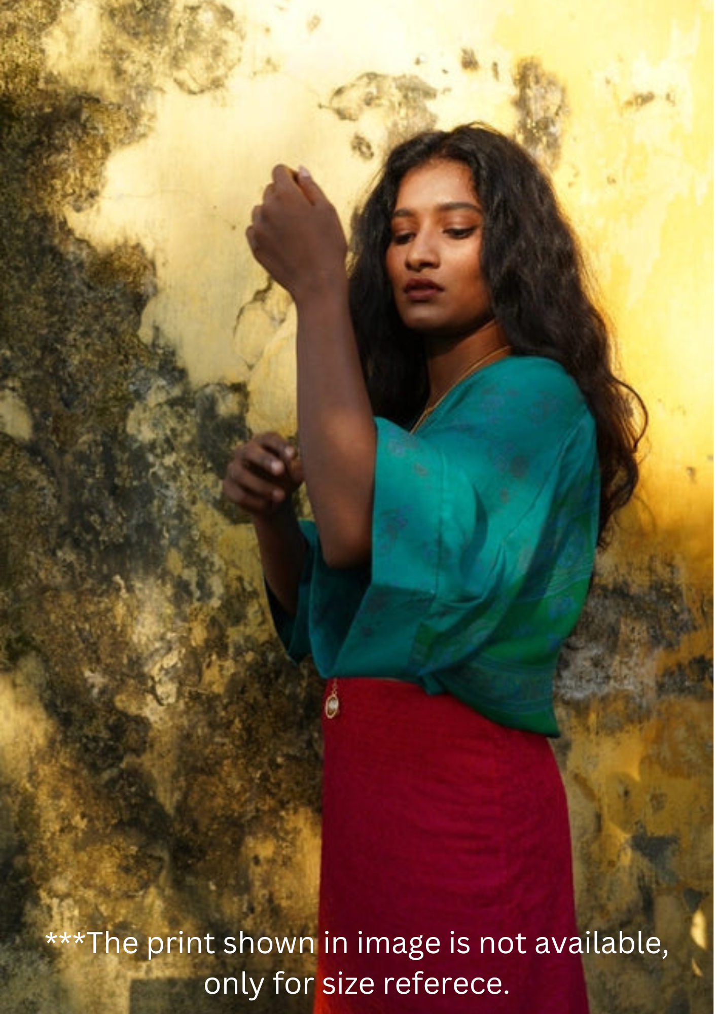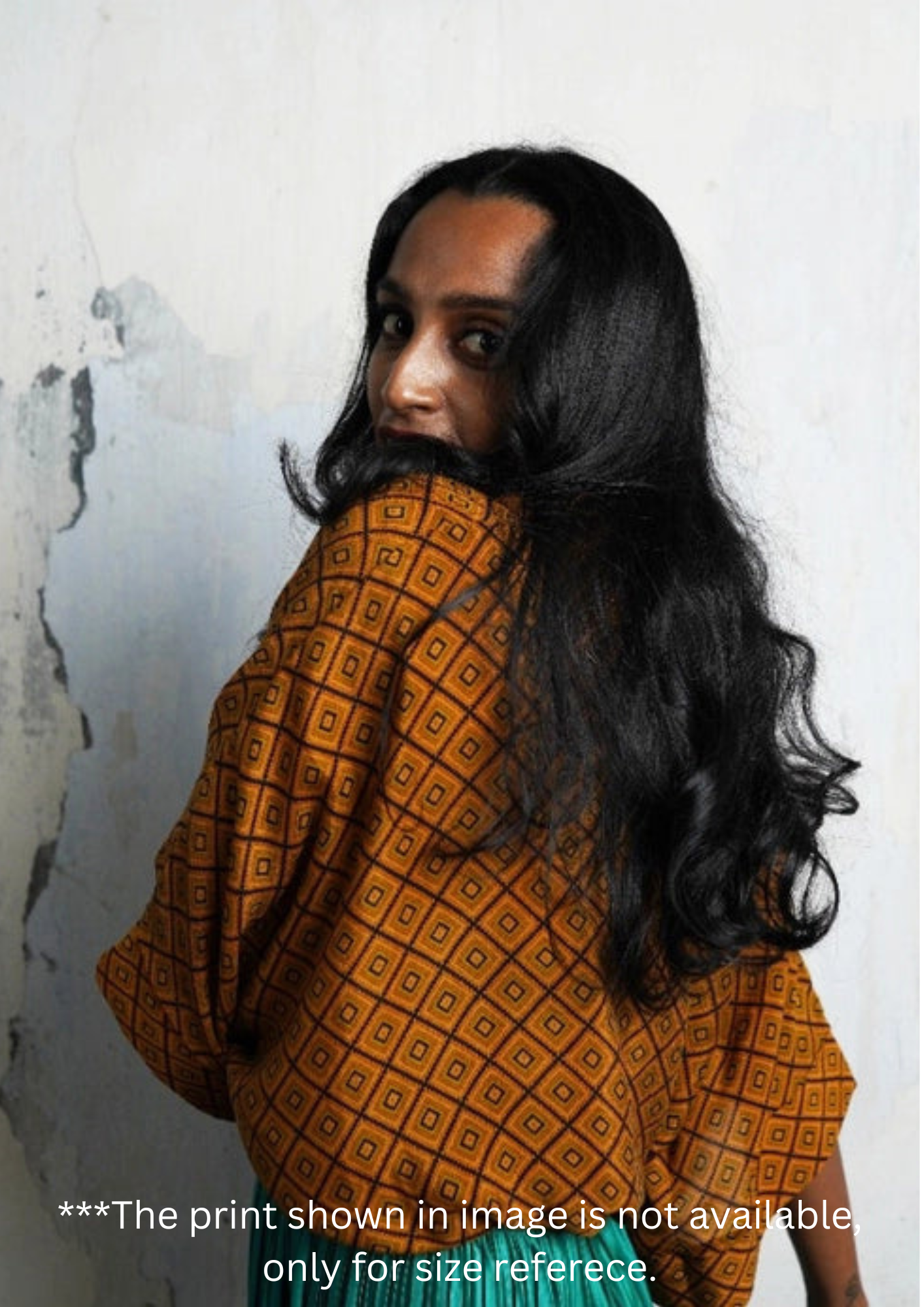 This is one of our best-selling tops, flattering all our beautiful body types. Wear it casually or dress it up. We search for the highest quality vintage drape silk for these tops. Each print is one of a kind.