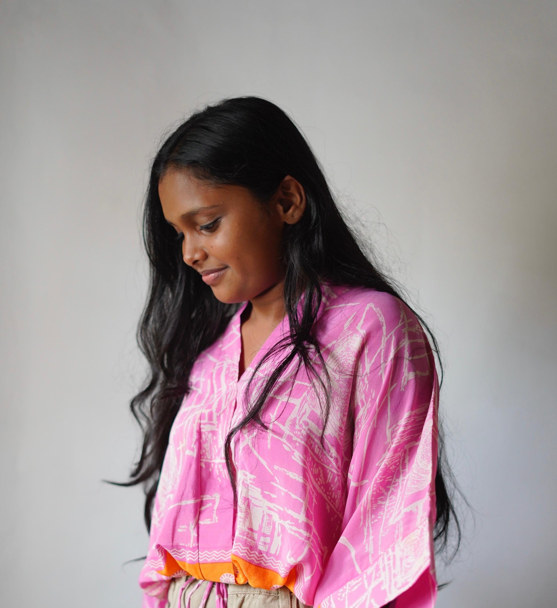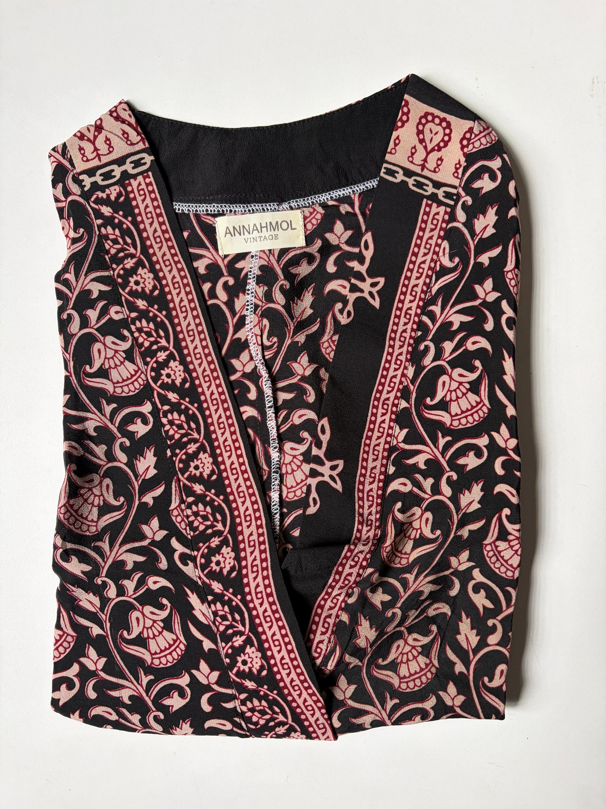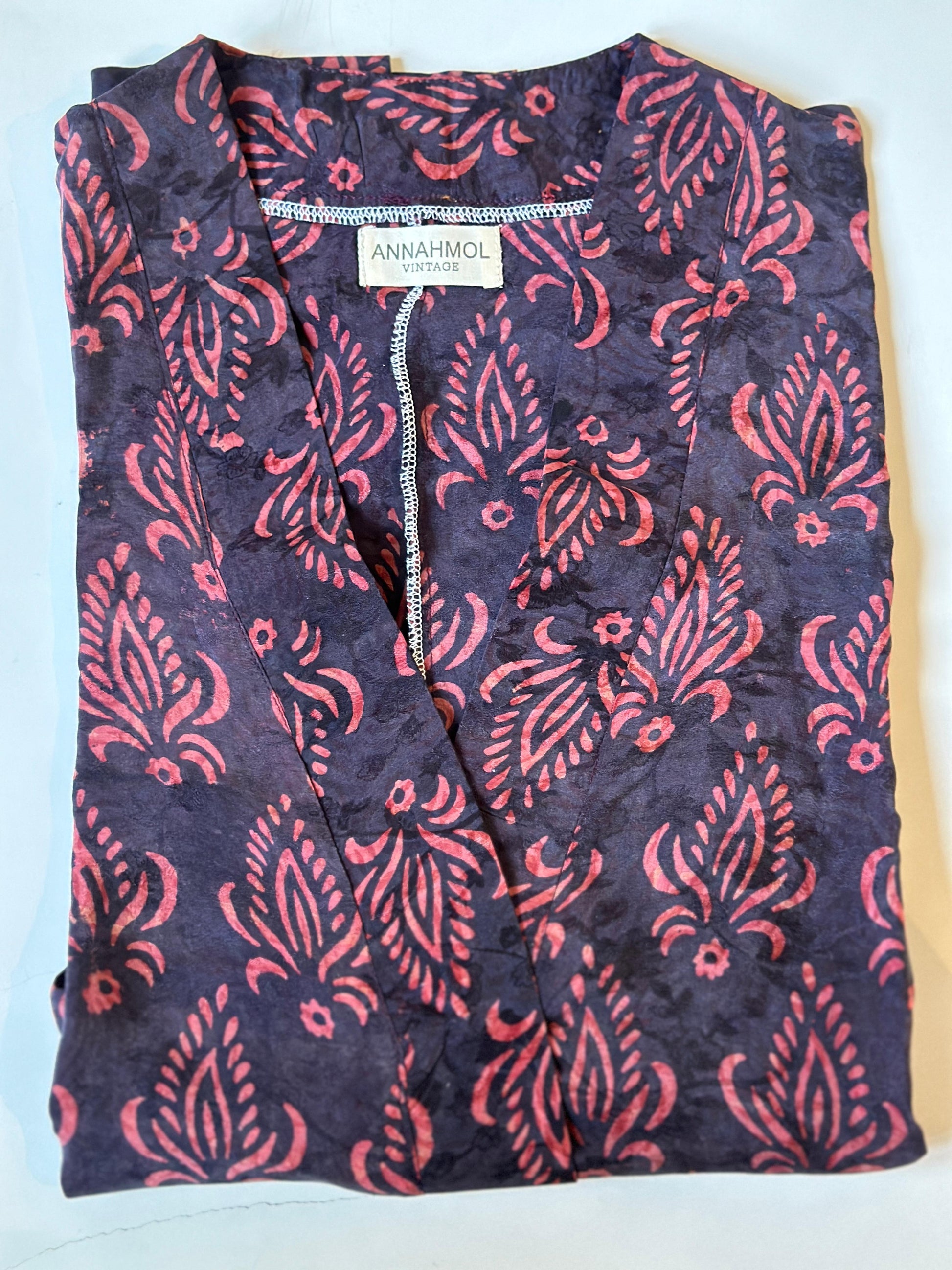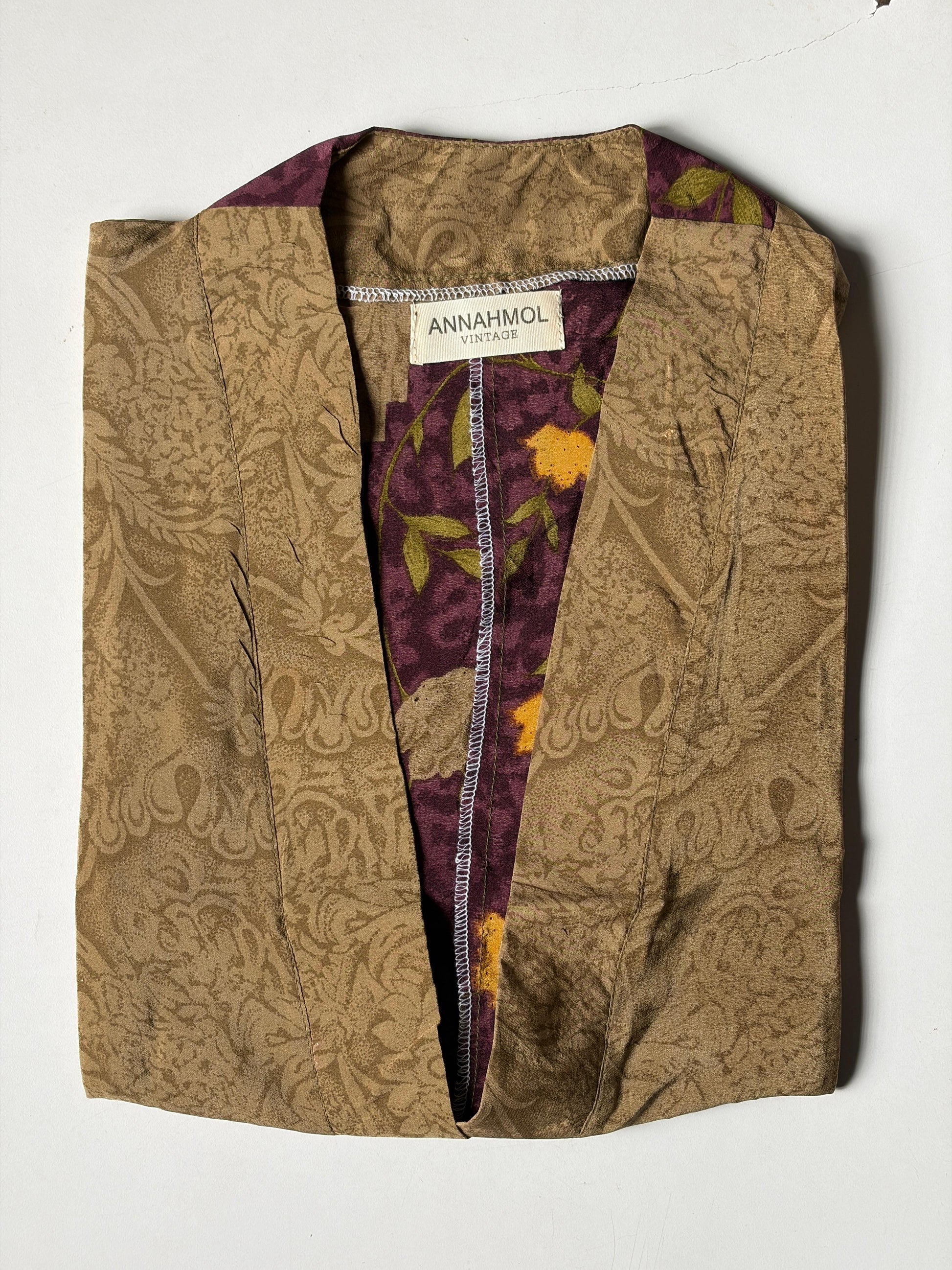 This is one of our best-selling tops, flattering all our beautiful body types. Wear it casually or dress it up. We search for the highest quality vintage drape silk for these tops. Each print is one of a kind.